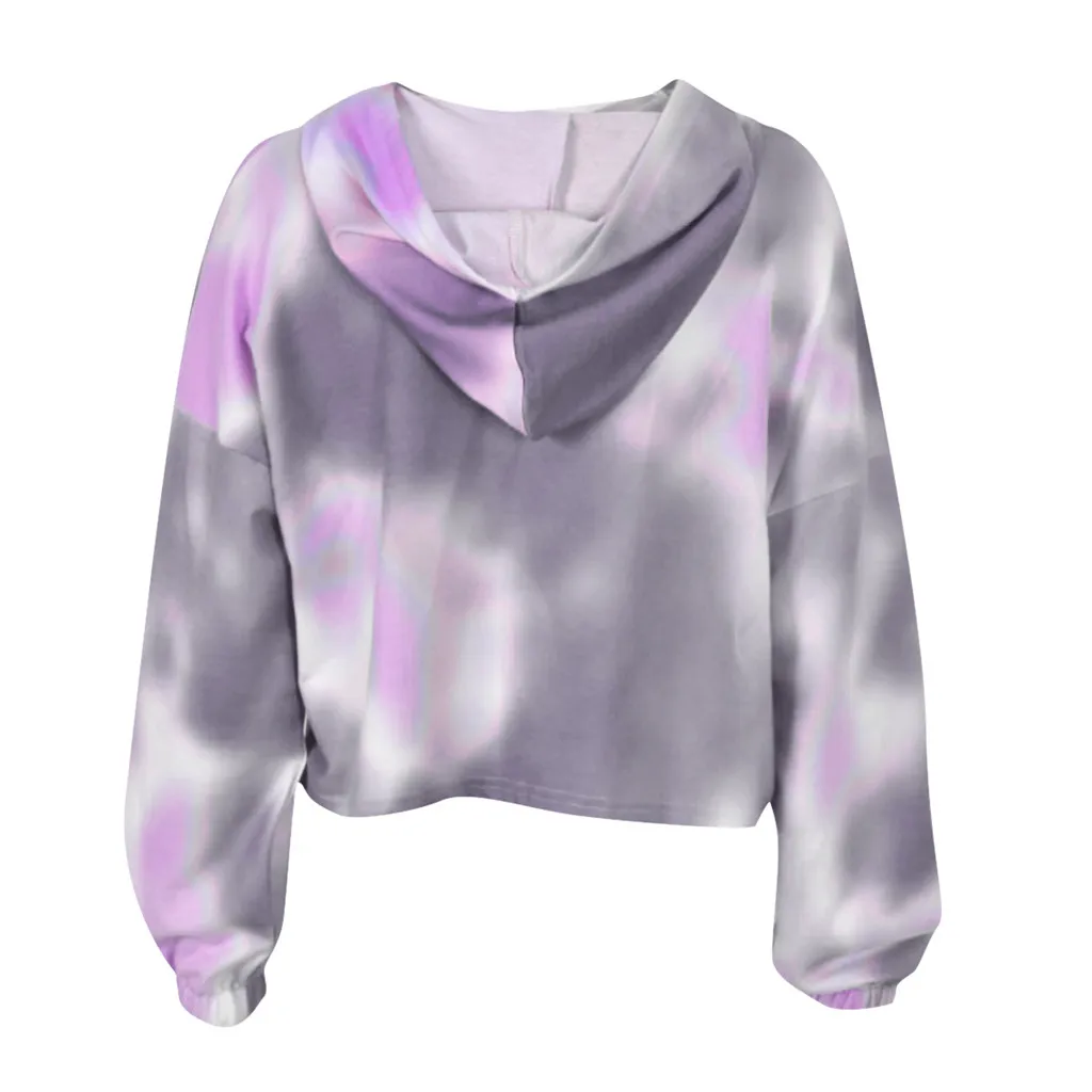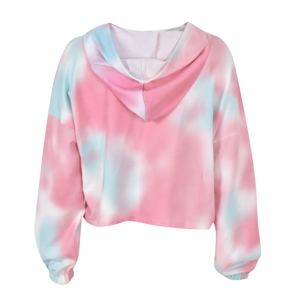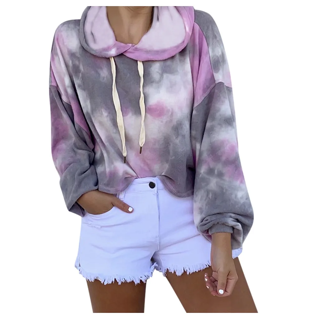 Женская толстовка с капюшоном с галстуком-краской; Свободная блузка; Цветной топ с длинными рукавами