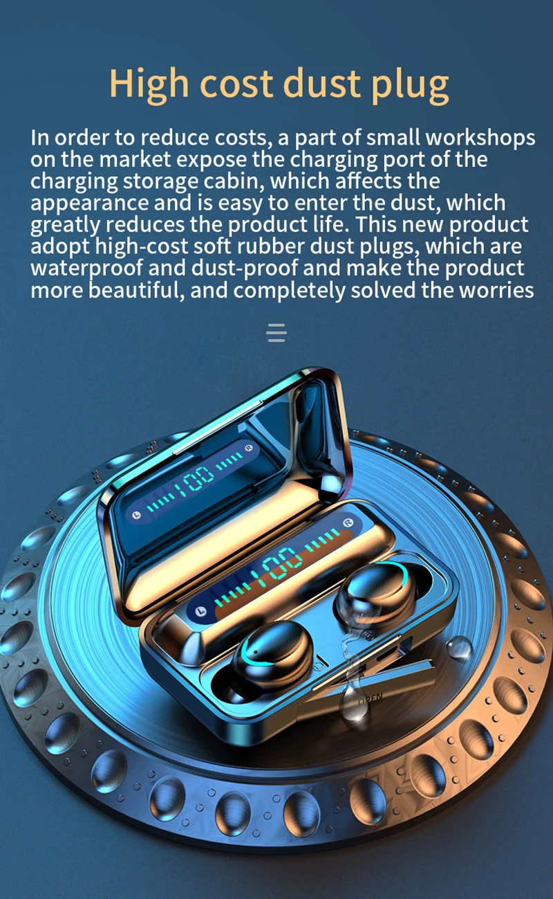 -Портативная зарядная коробка: с независимым светодиодный дисплеем на корпусе, вы можете проверить источник питания беспроводных наушников и зарядного устройства в любое время. Аккумулятор емкостью 1200 мА · ч может предоставить вам время использования 72 ч и заряжать телефоны iPhone / Samsung.
