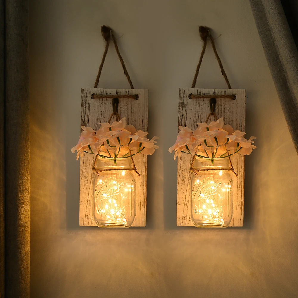 Упаковка: 2 * банка Mason, 2 * цветы (27 9 # orange),2 * гирлянда для ламп (2 м 20 ламп теплый белый 2AA питание от аккумулятора),2 * плата, батарея в комплект не входит