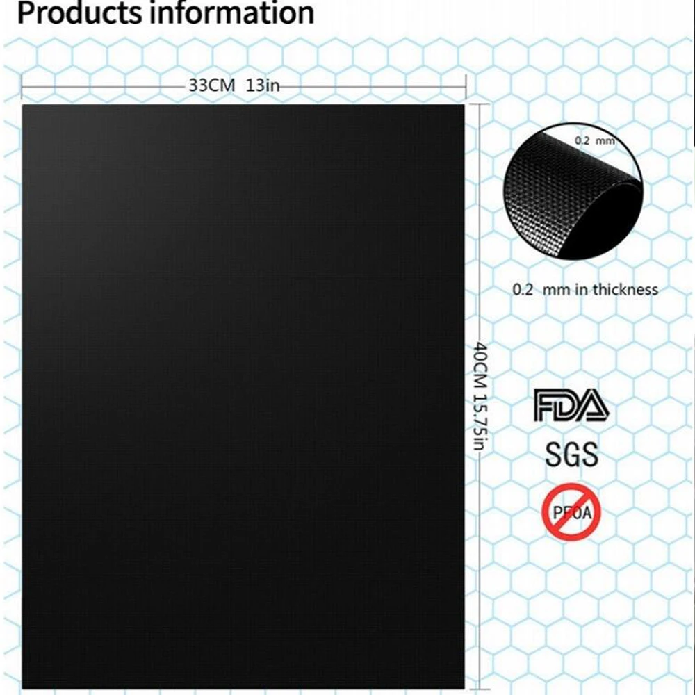 √ Антипригарный, легко моется и многоразовый. √Сделано из одобренного FDA ПТФЭ покрытия, которые делают ваш гриль гораздо более здоровым и безопасным. √Can работает для непрямого приготовления пищи на газе, древесном угле и электрических грилях, достаточно сильных, чтобы завоевать температуру до 500 °F. Не горит и не садится. Они также могут быть разрезаны, чтобы идеально подходить к вашему конкретному грилю или духовке. √Идеально подходит для курицы, крыльев, ребер, гамбургеров, стейков, рыбы, креветок, фруктов, овощей, завтраков и даже овощей для пиццы. √Идеально подходит для приготовления пищи дома, в парках, в саду, в кемпингах для семейного и общественного ужина, вечерние. Технические характеристики Материал: фторопласт с покрытием Толщина: 0,25 мм Размер: 40 см x 33 см Диапазон тепла: -70-260 ℃" Посылка В комплекте: 1 коврик для барбекю Технические характеристики Барбекю Гриль Мат работает для непрямой приготовления на Газу, уголь и электрические грили Не используйте более 500 градусов по Фаренгейту (260 градусов по Цельсию)-Используйте низкие и средние настройки тепла. Не используйте непосредственно над открытым огнем или источником тепла. Следуйте всем указаниям для непрямого приготовления пищи от производителя гриля. Не используйте острые металлические предметы или утварь, так как они могут поцарапать коврик.