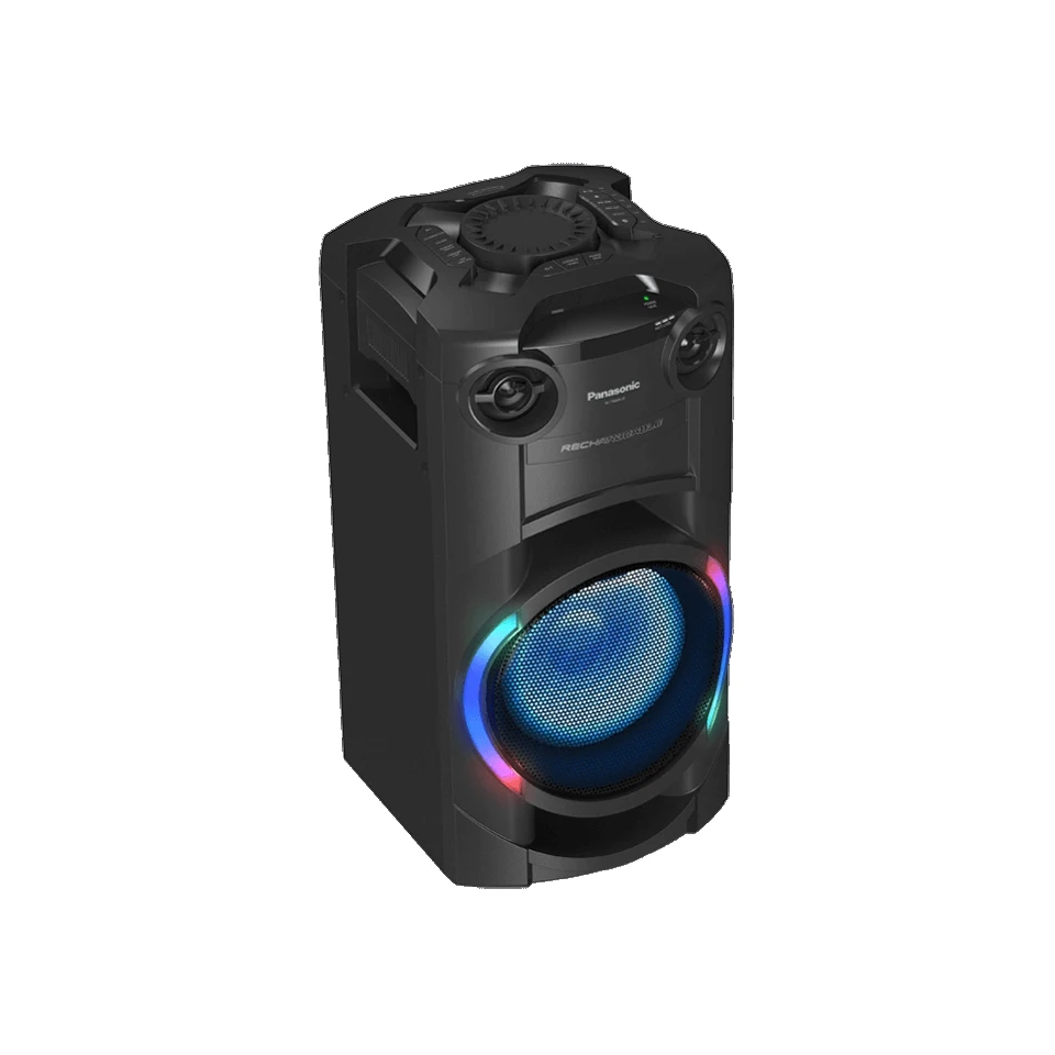 Мощность звука 300 Вт (RMS 30%) обеспечивается за счет 20 см низкочастотного динамика и двух 6 см высокочастотных динамиков а также технологии AIRQUAKE BASS для получения еще более глубоких басов. Многоцветная подсветка создает соответствующее световое сопровождение мощному звучанию. Монолитный компактный корпус со встроенным аккумулятором* обеспечит вас свободой действий, чтобы вы могли устроить вечеринку где угодно.