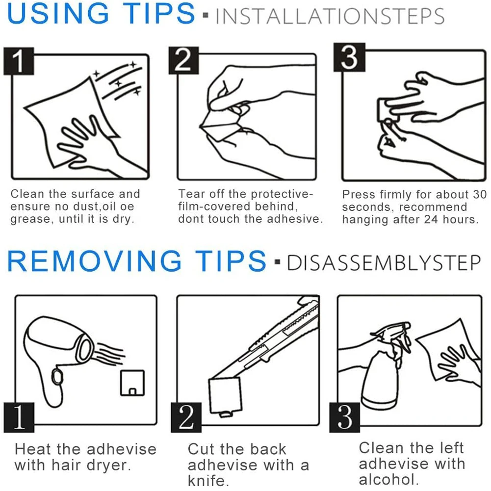 1. Многоцелевой дизайн: 1) кухонные крючки: Крючок может повесить кухонную утварь и кухонные принадлежности, фартук и т. д. 2) Крючки для гостиной: Крючок может повесить сумку, ключ, пальто, зонтик и т. д. 3) Крючки для ванной: Крючок может повесить полотенце, халат, купальные костюмы, принадлежности для ванной и т. д. 4) Крючки для спальни: На крючке можно повесить футболку, штаны, детскую одежду и т. Д. 2. Водонепроницаемый и устойчивый Высококачественная прочная конструкция из нержавеющей стали 304, обеспечивающая долговечность и долговечность, А также водонепроницаемый и устойчивый к коррозии для длительного ежедневного использования. 3. Легко установить и удалить 1) не требуется сверление и инструменты, просто снимите защитный слой на спине И вставьте его в нужное положение, затем нажмите на несколько секунд. Рекомендуется оставить его в течение 24 часов перед тем, как повесить любые предметы. 2) при удалении используйте фен для нагрева расплавленного клея, его можно легко снять. Без остатка, без повреждения стены. 4. Широкий Применение 1) Подходит для всех видов гладких твердых поверхностей, таких как керамическая плитка, мрамор, стекло, нержавеющая сталь, дерево, металл или пластик. 2) не подходит для окрашенных стен, обоев и шероховатых поверхностей. Примечание: 1. Не вешайте лишний вес, дорогие или хрупкие продукты. 2. Не использовать в условиях высокой температуры (не более 80 градусов). 3. Возможны отклонения в 1-5 мм из-за ручного измерения и незначительные отклонения в цвете для различных настроек дисплея.