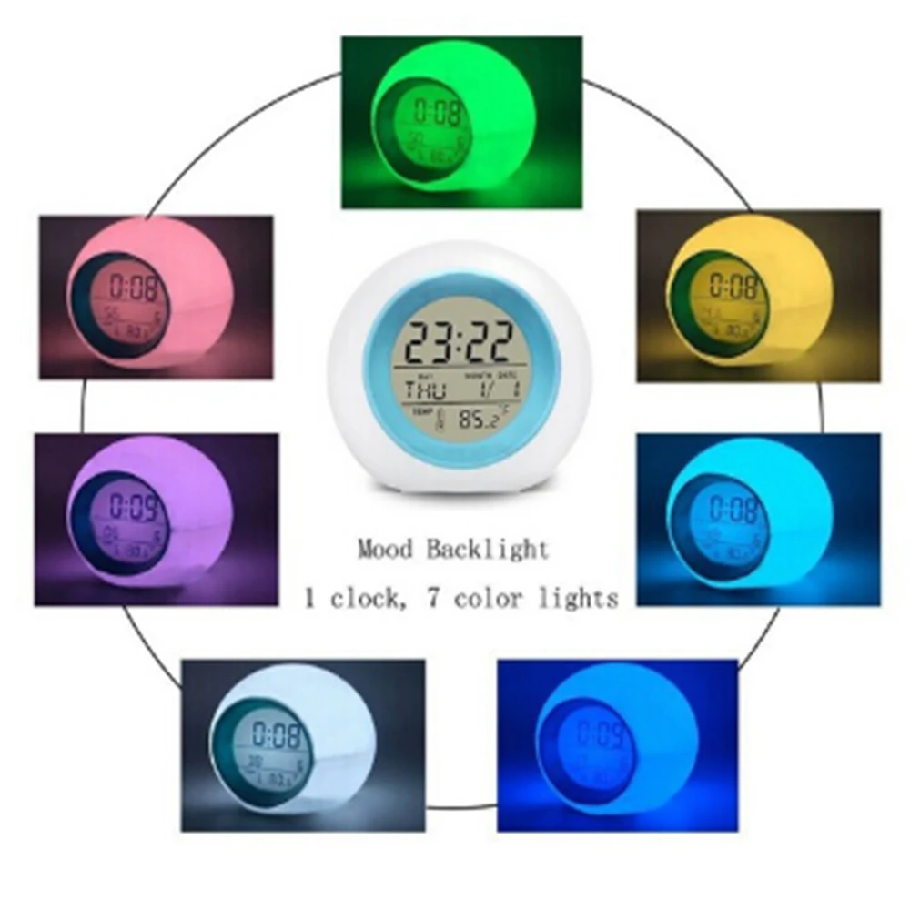 7 цветов светодиодный электронный цифровой будильник термометр Ночник светильник светящийся куб LCD часы домашний декор для детей Настольный