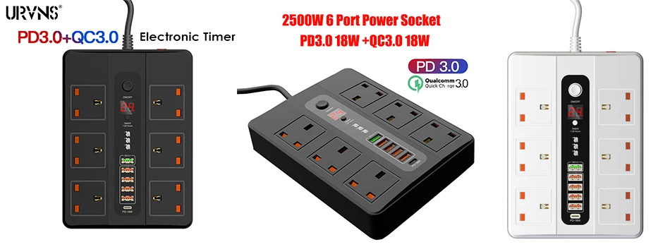 Номинальная мощность: 3000 Вт Номинальный ток: 12А Номинальное напряжение: 110-250 В переменного тока Розетки: 6 розеток комбо Общий выход USB: 5 в 3,1 А Тип вилки: Великобритания ЕС США