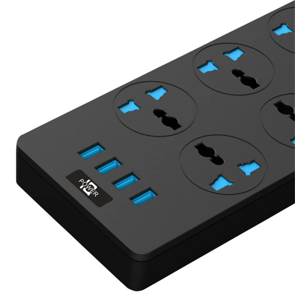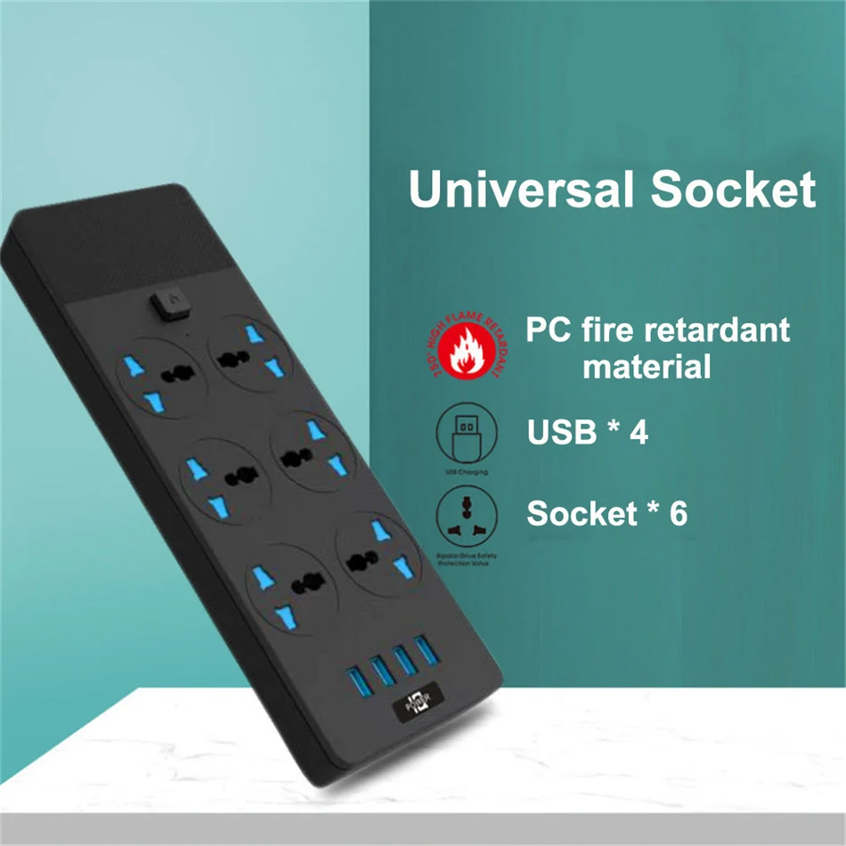 Удлинитель с защитой от перенапряжений, 6 розеток, 4 USB-порта для iPhone, iPad, ПК, дома, офиса, путешествий