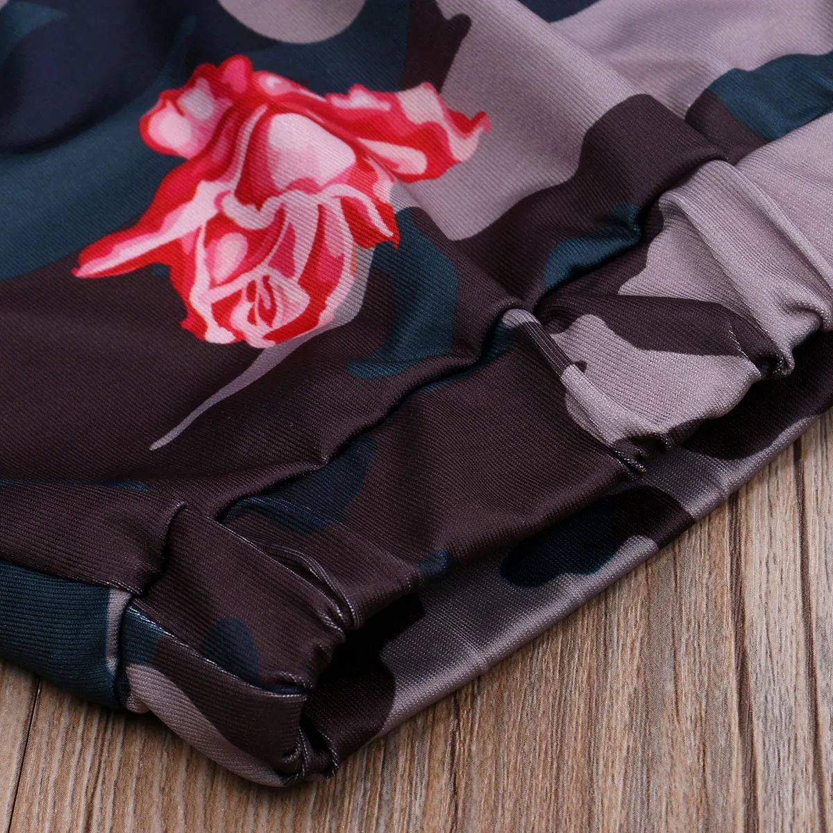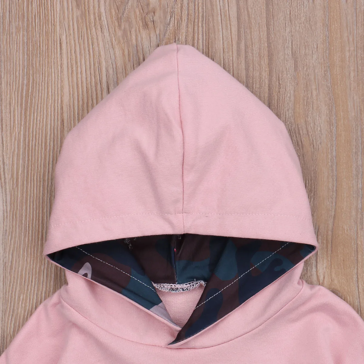 Осенний костюм из 2 предметов для малышей Розовый пуловер с капюшоном и длинными рукавами + камуфляжные штаны с цветочным принтом для маленьких девочек