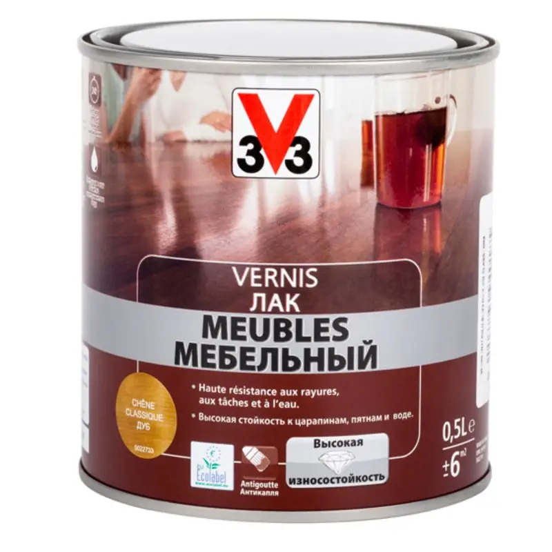 Высокая устойчивость к царапинам, ударам и воде. Длительная защита и высококачественное покрытие. Придает окрашенной поверхности красивый цвет. Не оставляет круги от горячих чашек, выдерживая нагревание поверхности до 90 градусов. Два слоя за ОДИН ДЕНЬ. Произведено во Франции. Описание. Лак для деревянных поверхностей и мебели Подготовка поверхности. Поверхность древесины должна быть сухой и чистой. Необработанная древесина: очистить от пыли и грязи. Особенности применения. Перед применением тщательно перемешать. Нанесите кистью, валиком, распылителем первый слой в направлении волокон дерева. Дайте высохнуть в течение 3 часов, затем отшлифуйте поверхность мелкозернистой наждачной бумагой (240), удалите пыль. Нанести второй слой. Дайте высохнуть в течение 24 часов