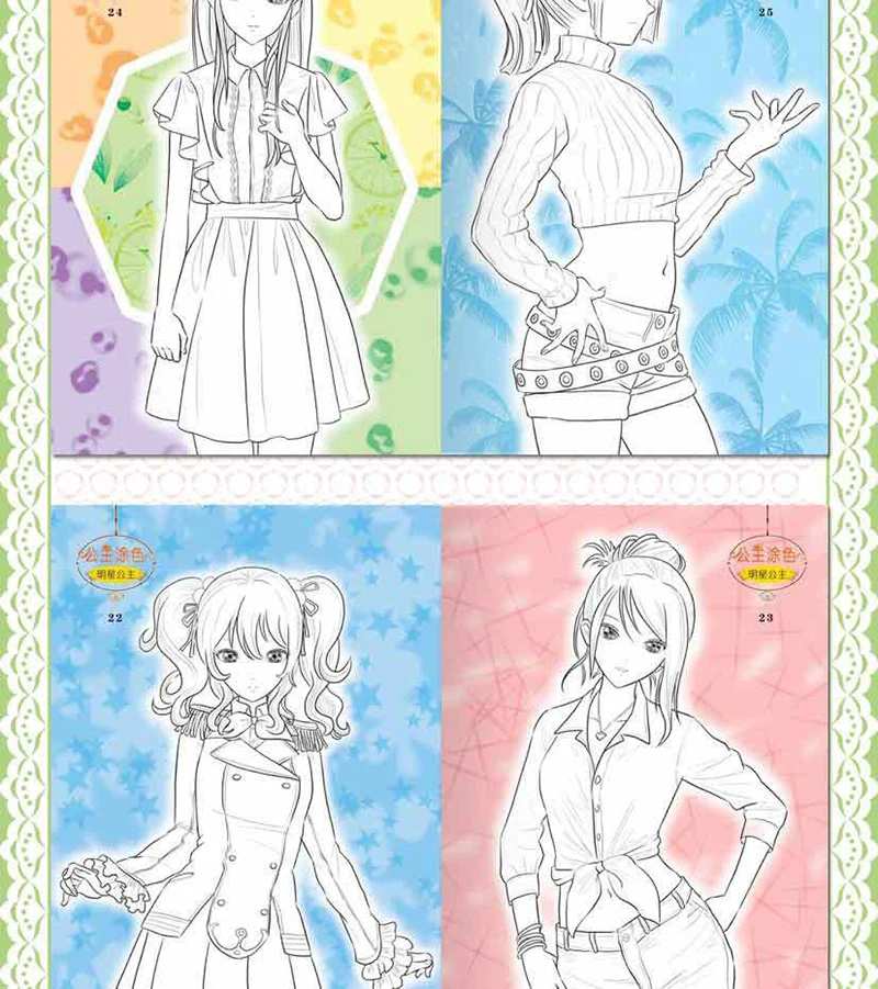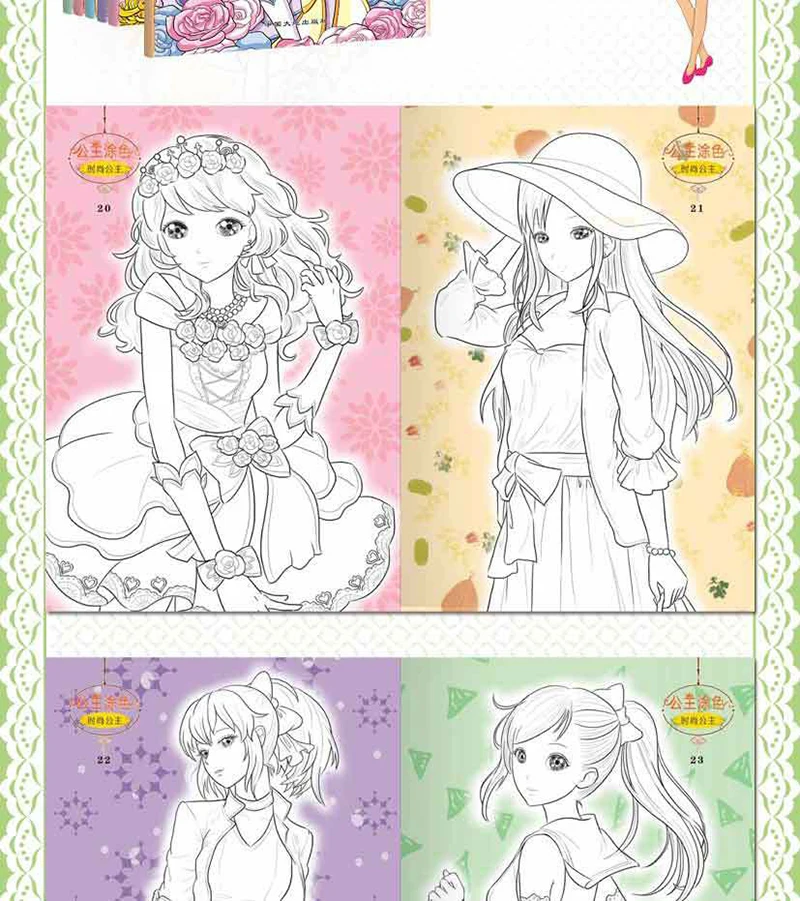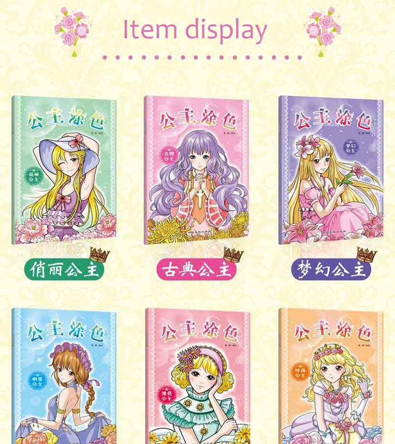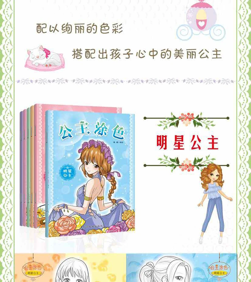 6 книг/набор принцесса раскраска для взрослых детей снятие стресса убить время живопись манга комиксы мультфильм Рисование книги
