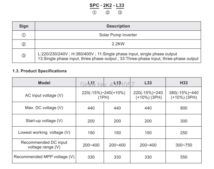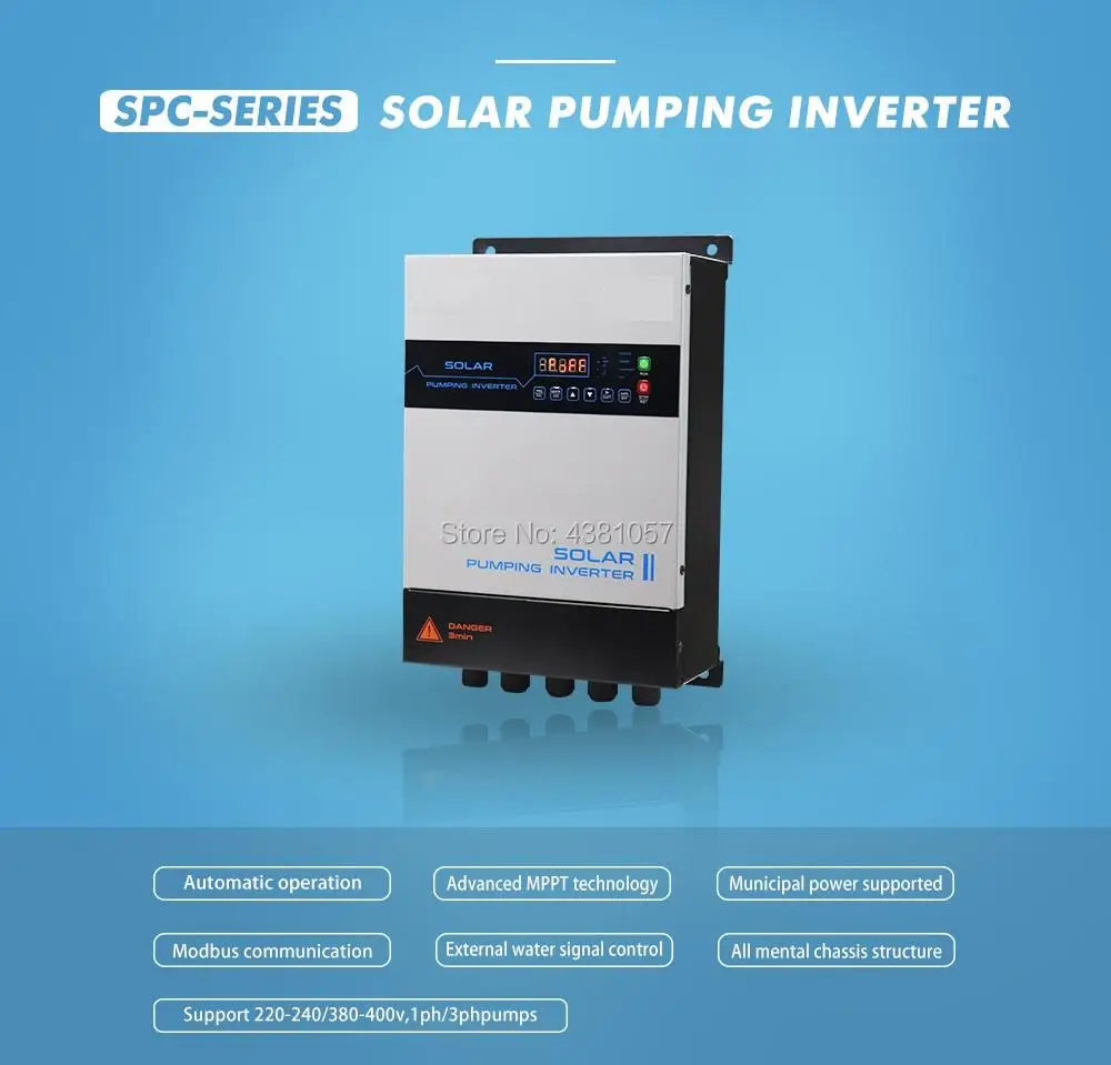 1. Функция MPPT: насос будет работать с низкой скоростью, даже облачно. 2. Функция компенсации входного напряжения переменного тока: когда солнечная энергия может поставлять водяной насос только в 80% мощности, инвертор будет питать баланс 20% входом переменного тока. Когда Солнечная энергия может поставить водяной насос в 100%, инвертор не будет принимать мощность от переменного тока, чтобы сохранить электрический счет. 3. Функция интеллектуального определения уровня воды: индукция нехватки воды/автоматическая остановка заполнения резервуара для воды. 4. Широко рабочее напряжение PV: от 150VDC до 400VDC. Спецификация: