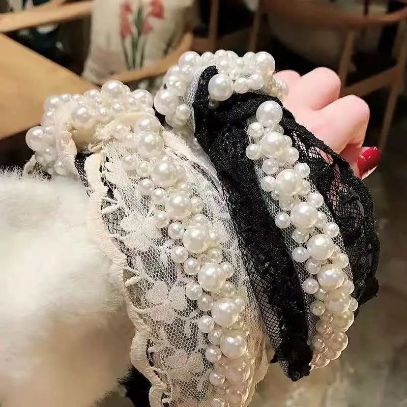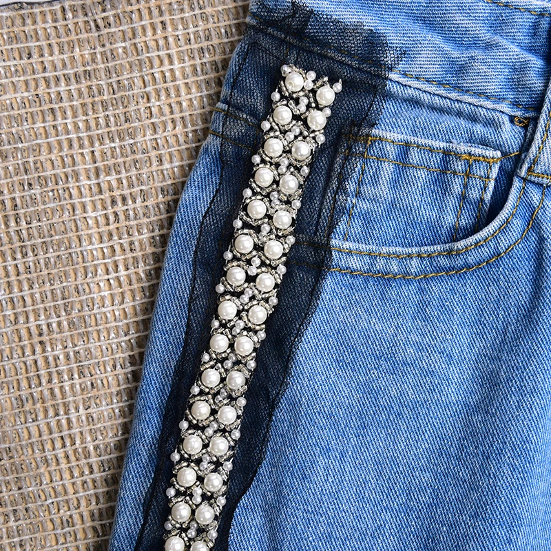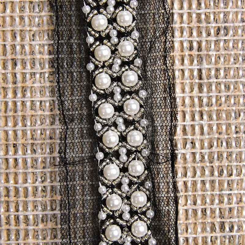 Новая Черно-белая черно-белая кружевная жемчужная сетчатая лента, расшитая вручную бисером
