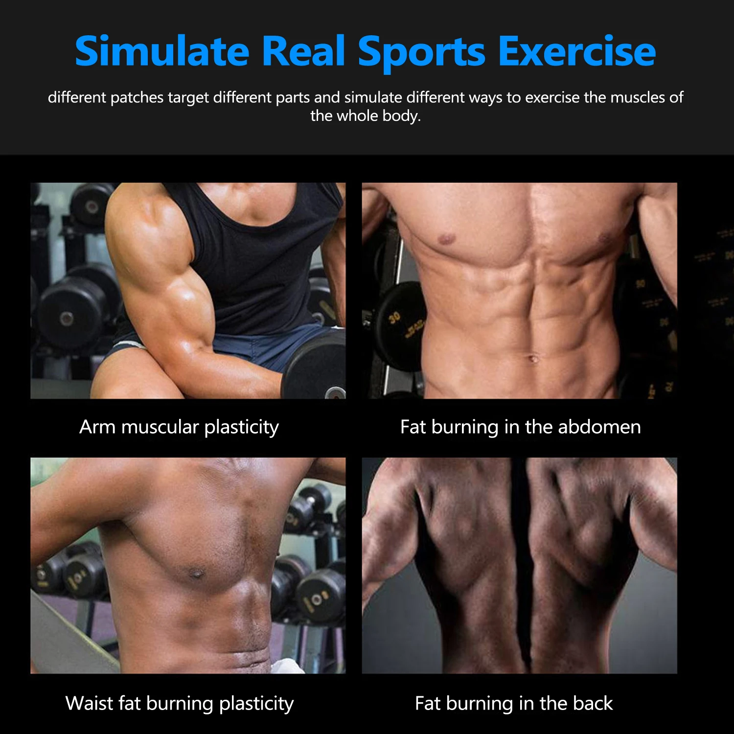 Похудение: действует на мышцы человека, стимулирует мышечные нервы, передает импульсные сигналы физических упражнений мышцам, Способствует завершению сокращение мышц, потребляет энергию, И сжигает лишний жир, чтобы добиться эффекта похудения.