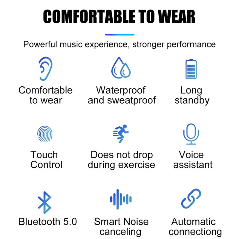 Параметры продукта: Название продукта: B9-TWS Версия Bluetooth: второе поколение Bluetooth 5,0 Продолжительность прослушивания музыки/звонков: 3 часа Зарядное устройство может заряжать гарнитуру: 4-5 раз Емкость зарядного устройства: полимерная литиевая батарея 300 мАч Емкость наушников: 60 мАч полимерная литиевая батарея Чувствительность: 120 дБ Сопротивление: 32 Ом Расстояние передачи Bluetooth: 10 метров Напряжение при зарядке: 3,7 V Bluetooth декодер: ACC