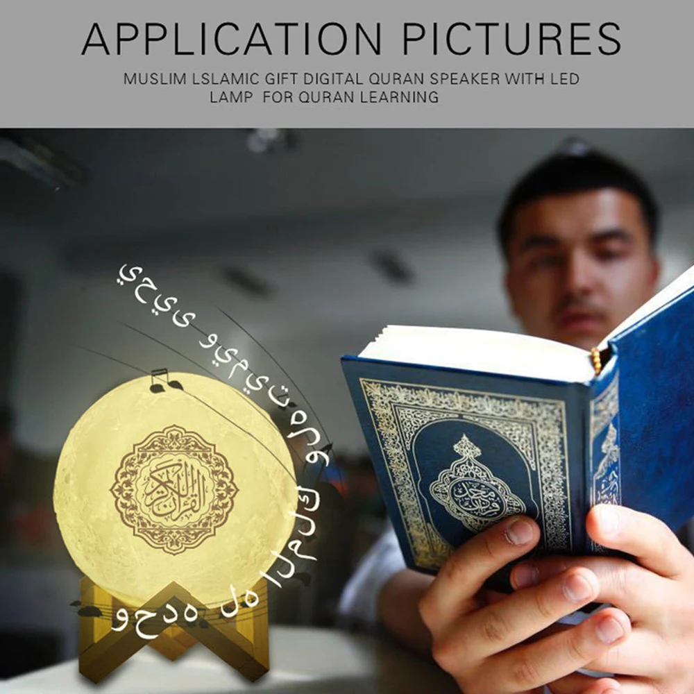 Беспроводной Quran Bluetooth колонки красочный маленький лунный светильник светодиодный ночной Светильник MoonБеспроводной динамик Quran с пультом дистанционного управления