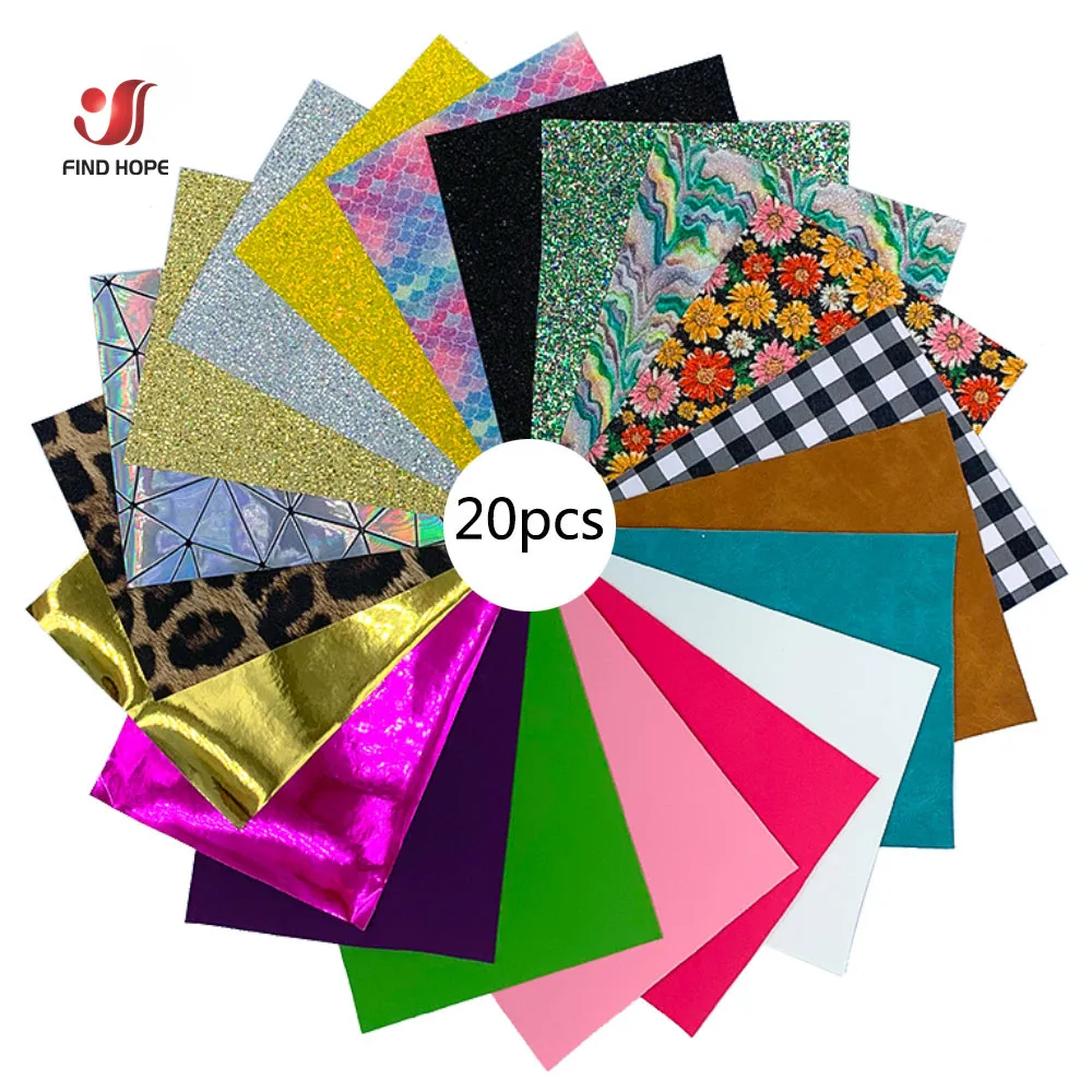 Комплект из 20 предметов, ультраклетчатая замшевая овечья кожа, Маргаритка, леопард, Русалка, тонкая массивная блестящая голограмма, радужные матовые блестки, винил, искусственная кожа, ткань, блестящая искусственная кожа, ручная работа, брошь, банты для волос, подарок, серьги, декор обуви, материал