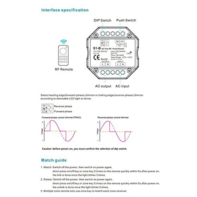 5. Один RF Диммер или переключатель может принять до 10 дистанционного управления.