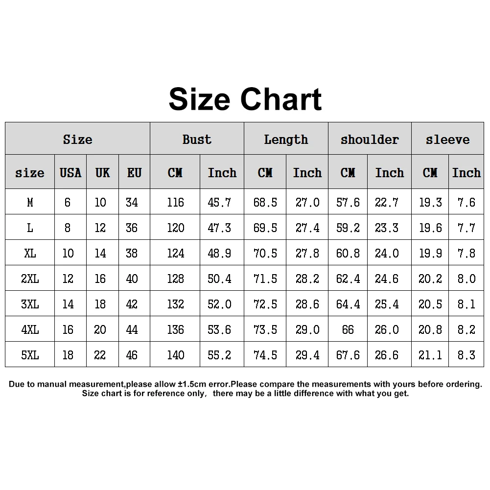 [Наши Размеры 5XL] Бюст: 140 см/55,2 ", Длина: 74,5 см/29,4 плечо: 67,6 см/26,6", рукава: 21,1 см/8,3 "(прибл.)