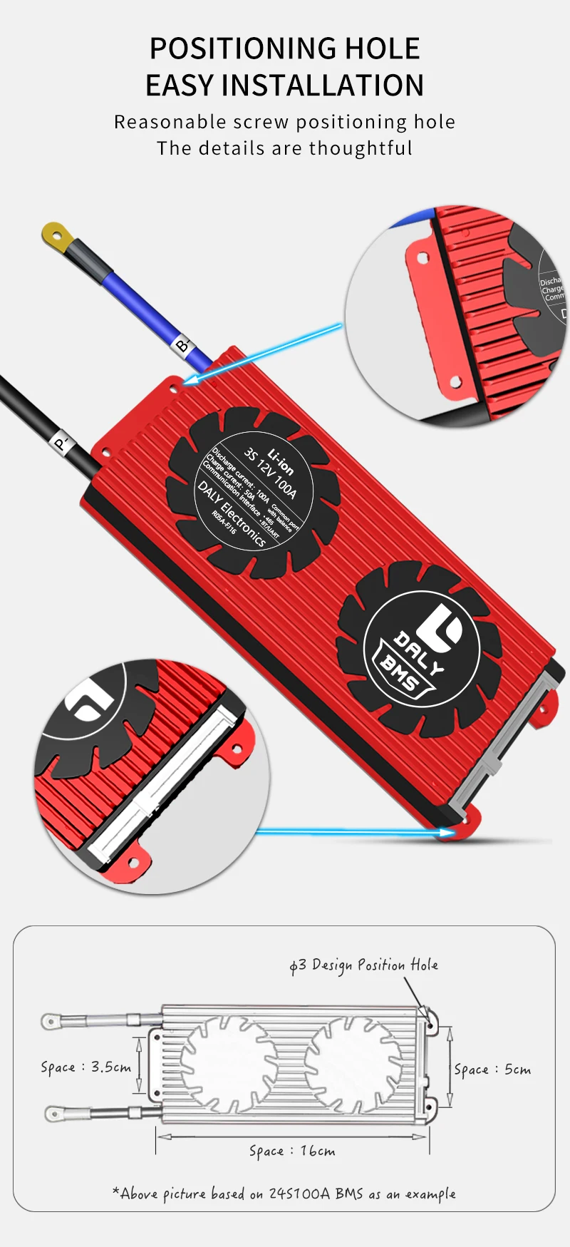 Daly 3.2V LiFePo4 8S 24V 80A 100A 120A 150A 200A 250A 500A 18650 PCM battery protection board BMS with balanced lithium battery module Model: DL8S (3.2V Rated LiFePO4 Battery bms not for 3.7V rated Li-ION Battery bms) common Version : common port for charge/discharge separate Version : separate port for charge/discharge We can customize any PCB from 1S to 30S lithium batteries with different current. Highlight:For the same model, its charge current is less than discharge current because Daly PCBAs were updated to well protect customer battery. Any request, Please contact us.Daly: Jan 2020. 1. Overview ◆DL8S 24V 80A 100A 120A 150A 200A 500A PCB is used for 8 series 24V lifepo4 battery pack. ◆We can design it for various lithium batteries like LiFepo4, LiMn2O4, and Li-polymer etc. ◆The main functions are: over charge protection, over discharge protection, over current protection, short-circuit protection, temperature protection etc. ◆According to the customer request we can develop PCM in different sizes and structures. ◆BMS manufactured by high quality Mos and IC imported . Keep your battery long cycle serivce life time. 2. Advantage ◆Use top quality (A-level) protective integrated circuit IC, from the solution of Seiko of Japan. ◆Strong load ability, constant discharge current 80A 100A 120A 150A 200A 500A, use high voltage resistance, low inner resistance power Mosfet. The heat sink will greatly help cooling. ◆IC itself has power balancing function. The circuit is simple and reliable. ◆Typical voltage detection for each cell. So each battery will be prevented over charged or over discharged. Over current and short circuit protection function is very reliable.Long time short circuit of the load won’t affect the PCB and the battery.Temperature protection during charging and discharging. ◆Extreme low power consumption. The consumption of the whole device is less than 50uA. ◆PCB use high anti-corrosion, high water resistance, high impedance ESD conformal Coating.