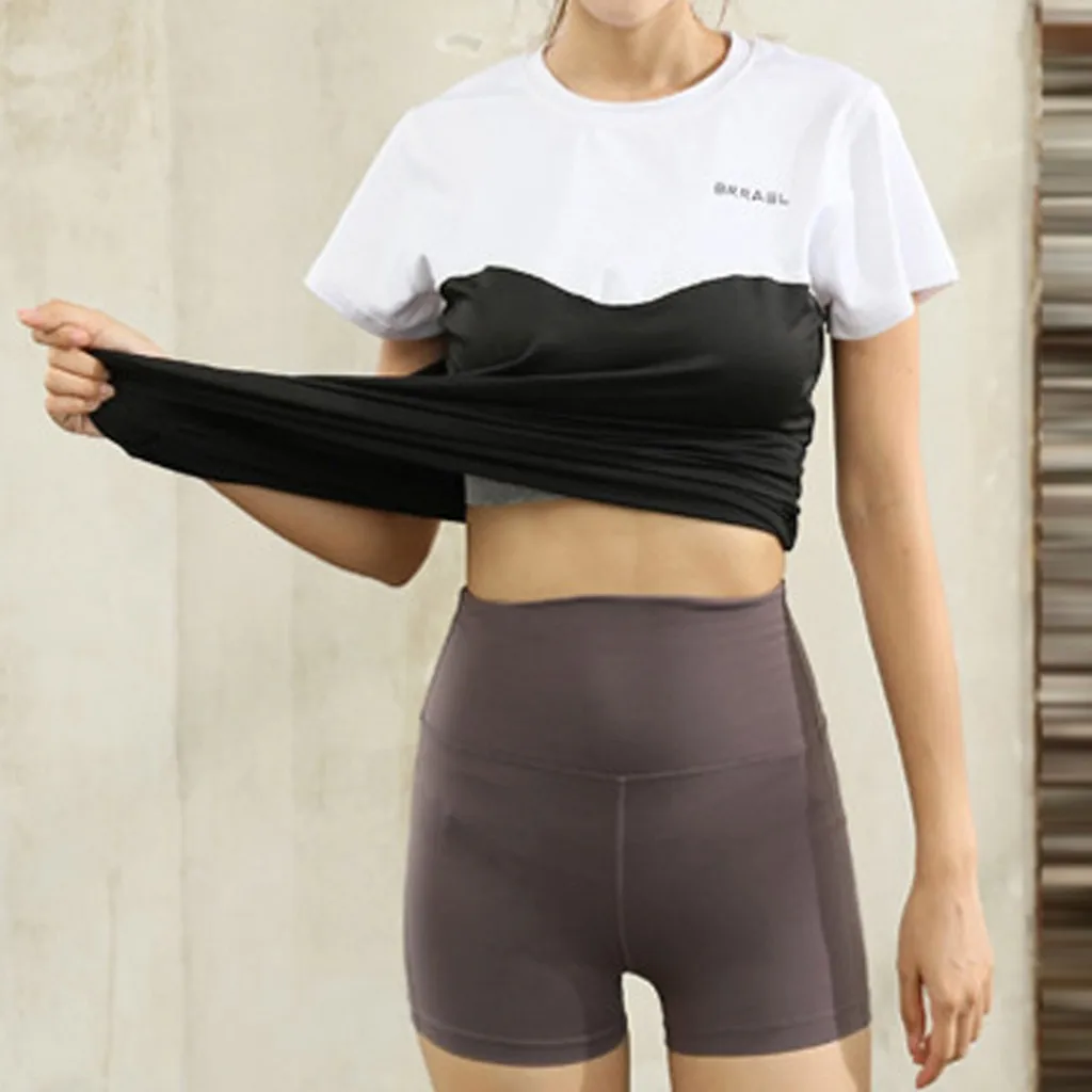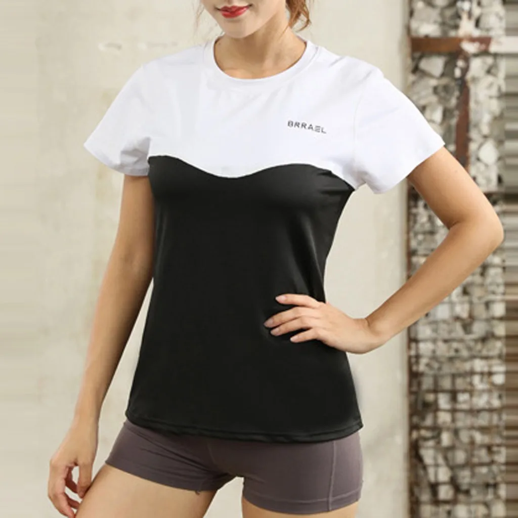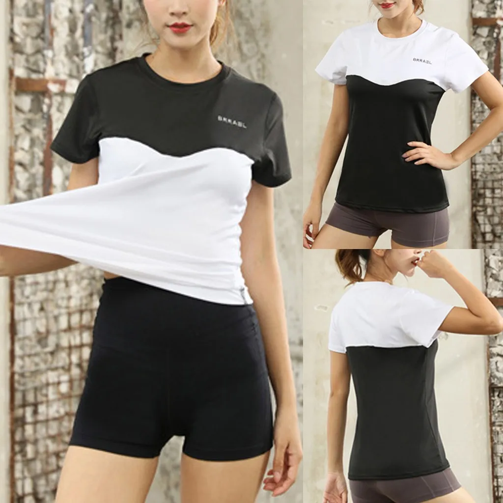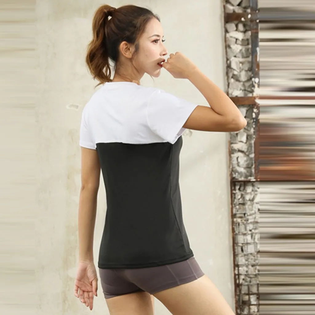 Женский модный топ для фитнеса, Спортивная эластичная блузка для йоги с коротким рукавом