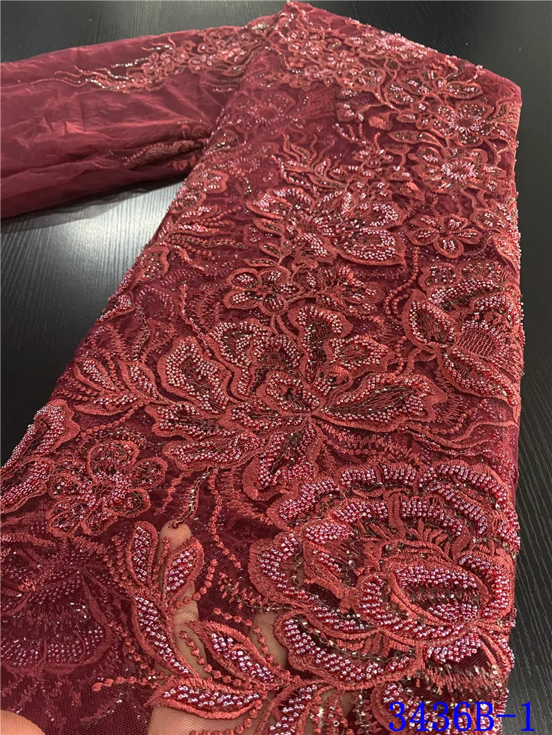 NIAI вышивка Африканский французский Тюль Кружево Ручной работы Бусины кружева ткани нигерийские Свадебные кружева ткань французская сетка XY3436B-2