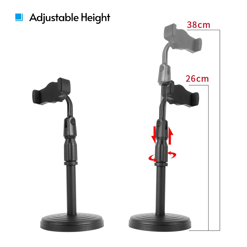 Настольная подставка для смартфона 26-38 см регулируемая высота с держателями для телефона вращение на 360 ° для потокового онлайн-видео