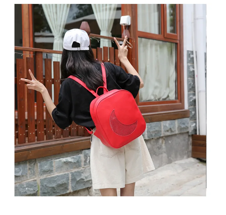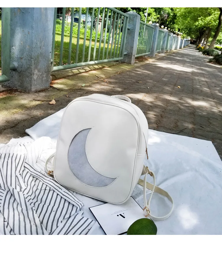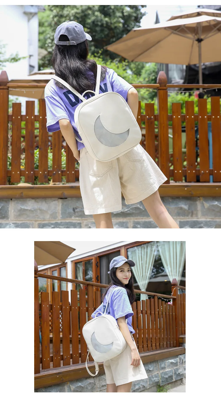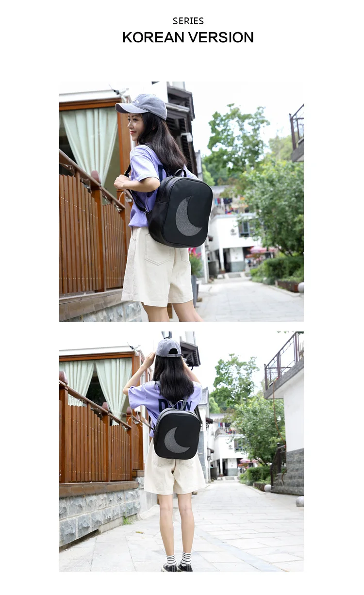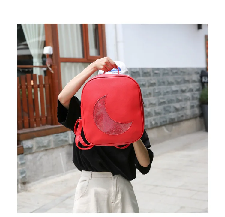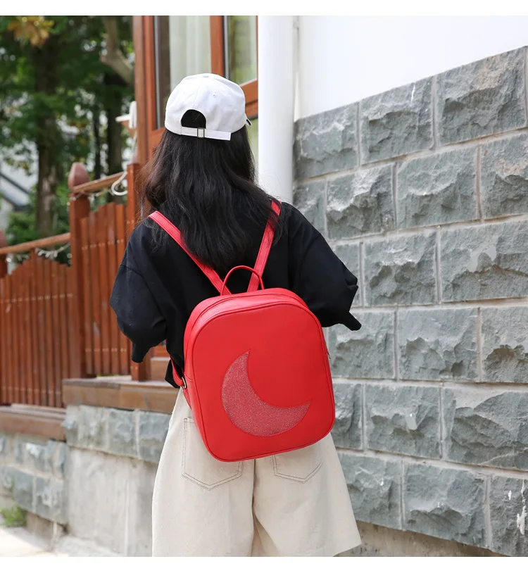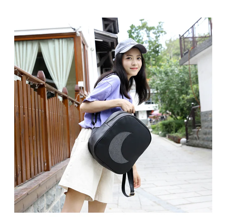 Корейский женский рюкзак с Луной, открытый, на молнии, Одноцветный, многофункциональный, мягкий кожаный рюкзак, женская сумка на плечо
