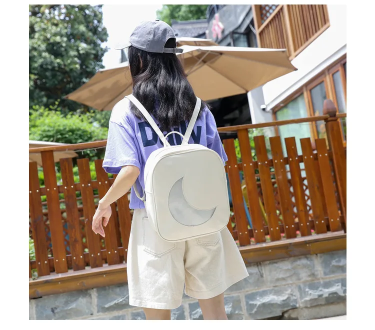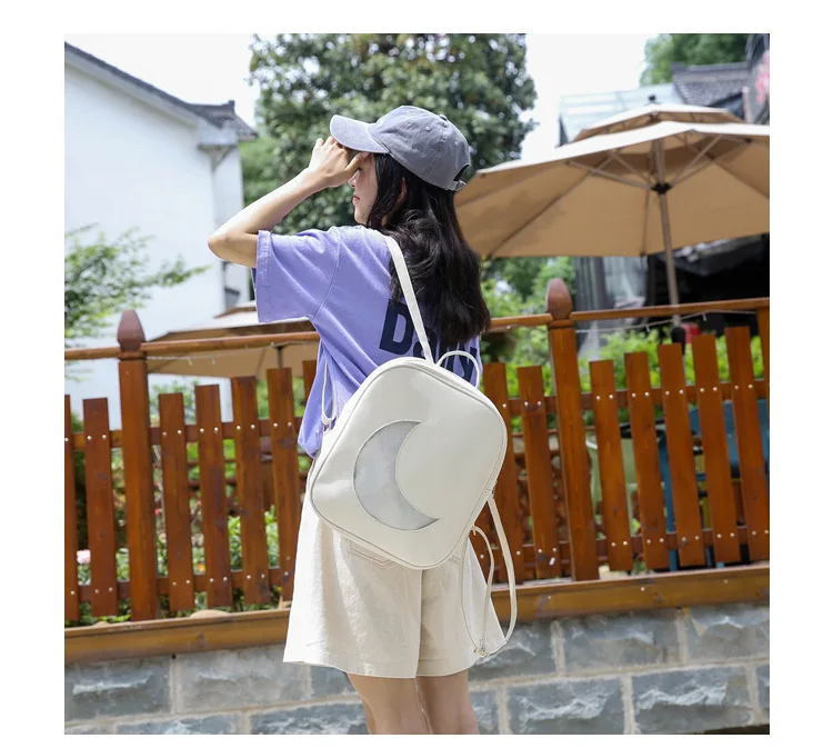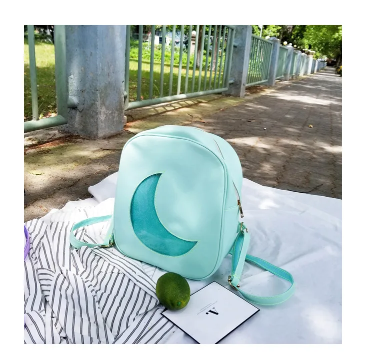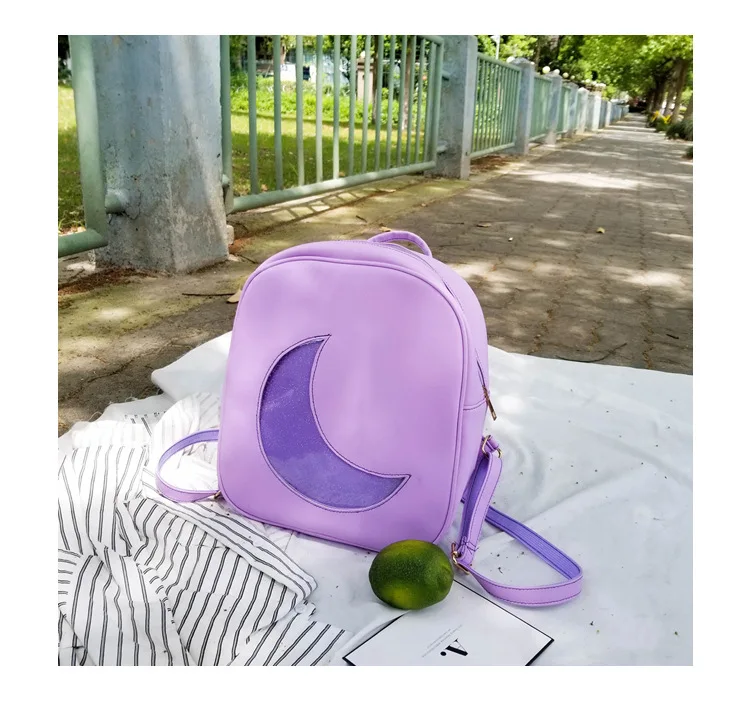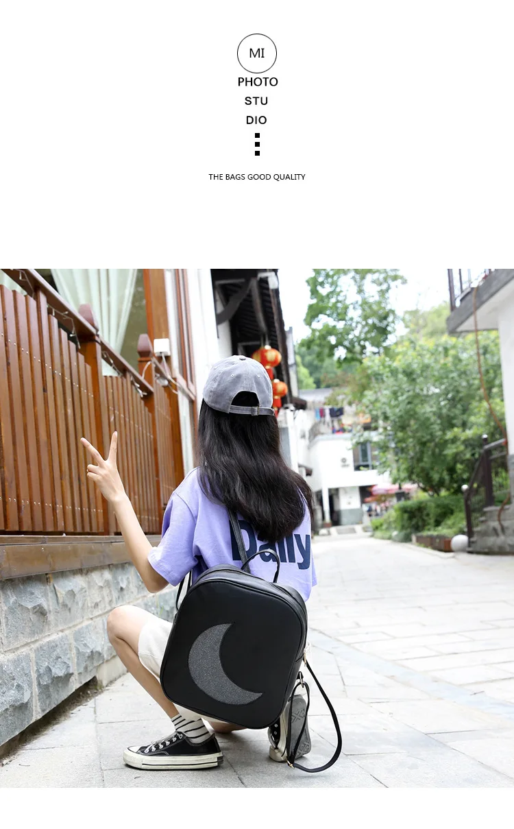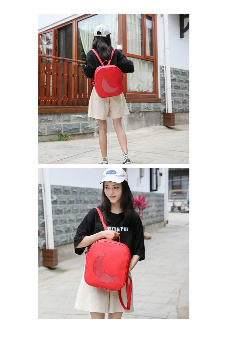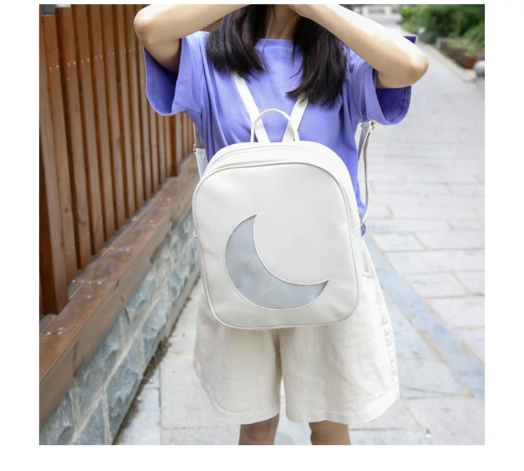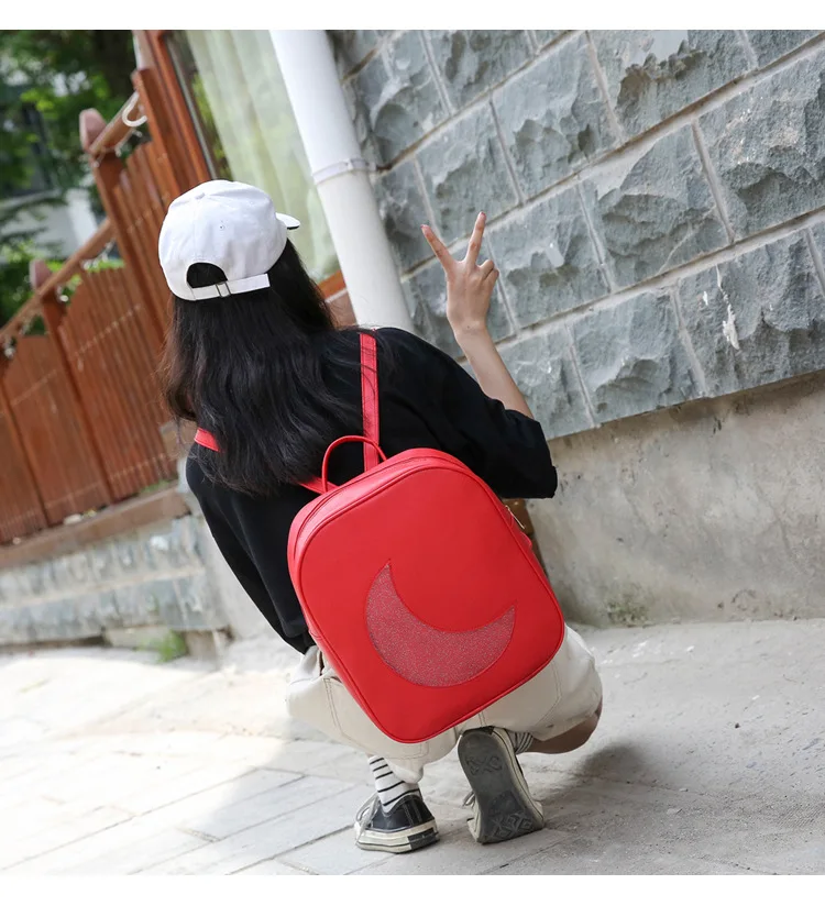 Корейский женский рюкзак с Луной, открытый, на молнии, Одноцветный, многофункциональный, мягкий кожаный рюкзак, женская сумка на плечо