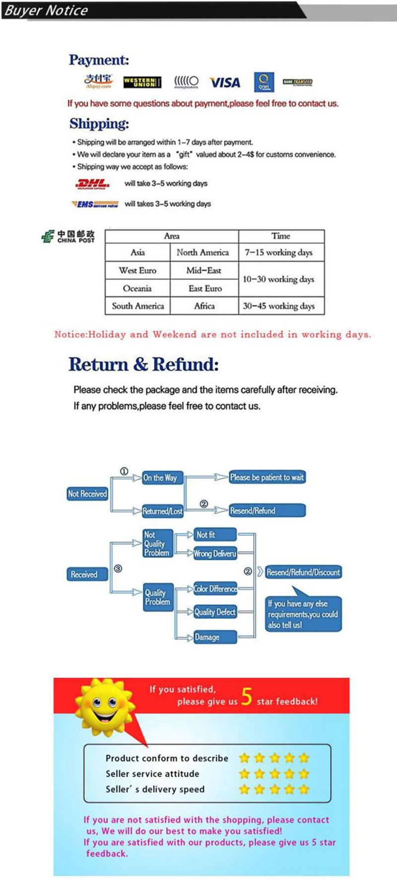 Примечание: Если размер не подходит для вас, пожалуйста, свяжитесь с нами. Мы принимаем заказы на заказ.