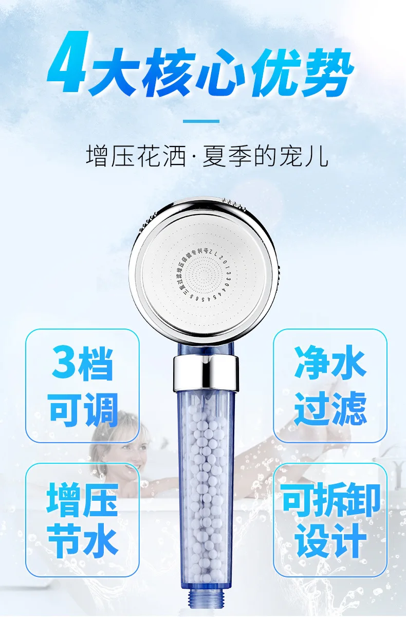 Размер этого продукта подходит для большинства основных душевых труб Особенности: 3 из АБС-пластика с узором Три эффектных эффекта можно регулировать, чтобы вы могли насладиться расслабляющим ливнем. Керамические шарики с активированным отрицательным ионом Отрицательные ионные шарики удаляют хлор, дальние инфракрасные минерализованные шарики и антибактериальные, удаляют 97% остаточного хлора и тяжелых металлов в воде, очищают воду, улучшают поглощение минеральных питательных веществ, уменьшают секрецию масла и повышают жизнестойкость клеток. Экономия воды и увеличение давления воды Душевая головка имеет лазерную перфорированную технологию, экономит больше воды и увеличивает давление воды Простая установка Насадка для душа может просто завинчиваться на любой стандартный шланг для душа, очень удобно Приложений Он также может быть широко использован в качестве садового спринклера, подходит для мужчин, женщин, детей и домашних животных. Спецификация Тип: насадки для душа Материал: АБС-пластик Цвет: синий и прозрачный Количество: 1 шт. Диаметр панели: 8 см/3,1 дюйма Общая длина: 22 см/8,7 дюймов Dia.: 7,5 см/3" Вес нетто: 238 г/8,4 унций Комплект поставки: 1 * душевая головка