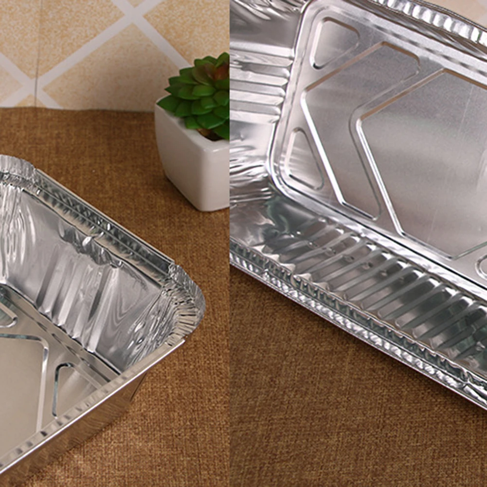 50Pcs Disposable Rectangle Aluminum Foil Food Tray Baking Pan Container with Lid