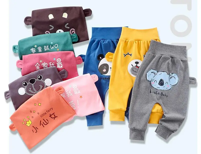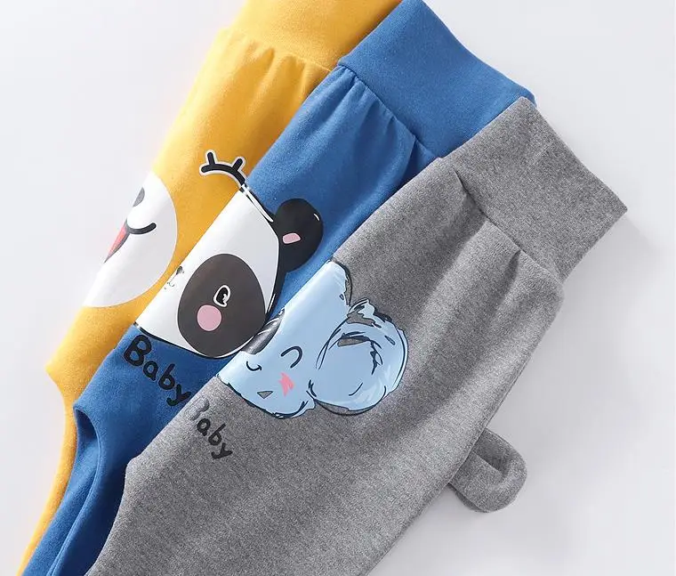 Штаны для малышей штаны-шаровары для новорожденных мальчиков и девочек хлопковые длинные штаны с высокой талией и рисунком для мальчиков