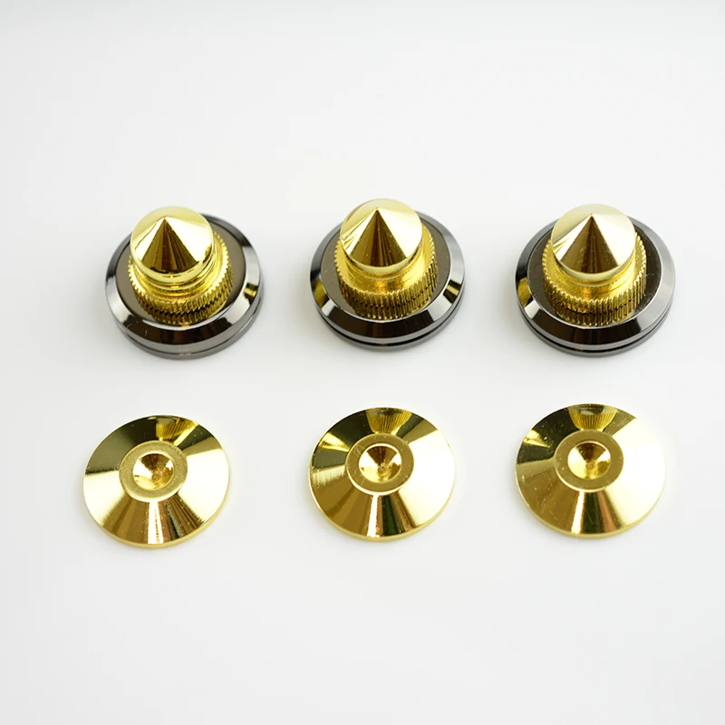 Амортизирующие шипы для аудио оборудования используется для (CD проигрыватель) (для динамиков) амортизирующие шипы Максимальный диаметр: 28 мм, Общая высота ноготь + Ножка: 28 мм, После тщательной полировки и полировки прецизионным оборудованием, это действительно черное золото. Золотое покрытие. Благородный, роскошный и благородный. Первоклассный амортизатор. Диаметр Большого Круга ногтя 28 мм; Диаметр маленького 25 мм. Две комбинированные высоты: 28 мм. Позолоченный 24-каратным золотом, тонкое мастерство, роскошный и красивый! Первоклассный эффект амортизатора удара