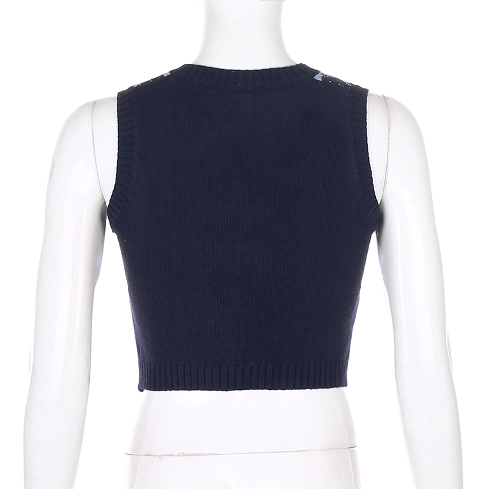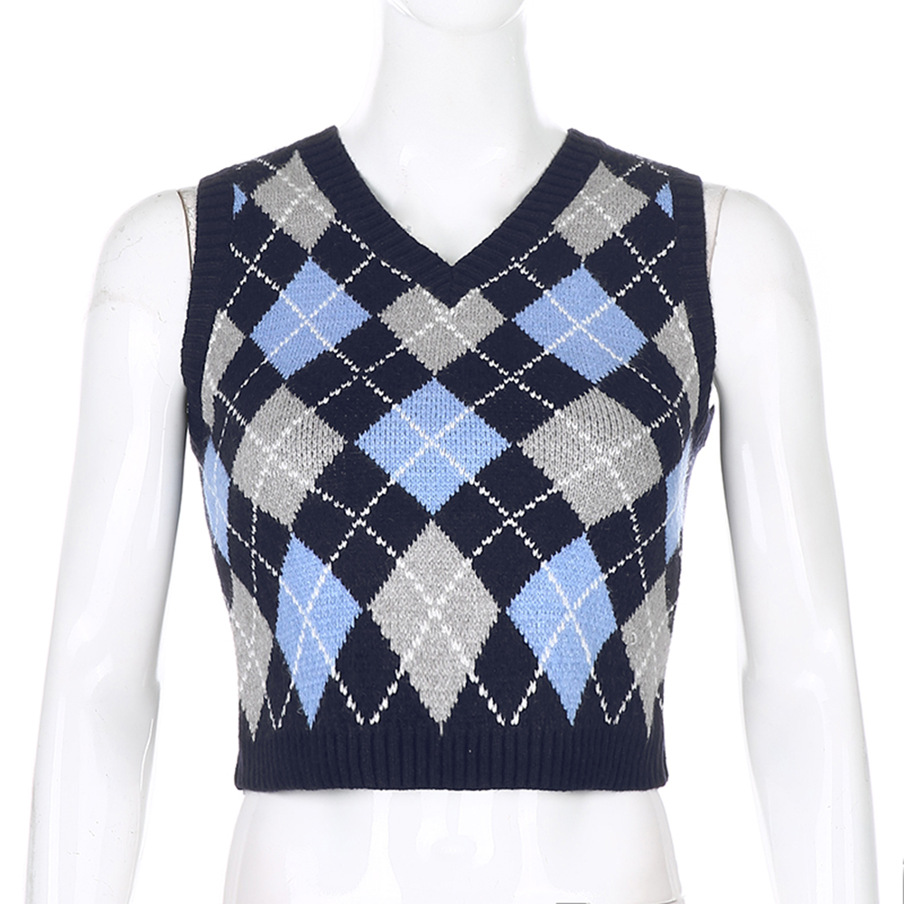 Винтажный стиль, свитер, жилет Y2K, модный клетчатый вязаный укороченный свитер без рукавов для девочек, осень 2020, Новые свитера в консервативном стиле