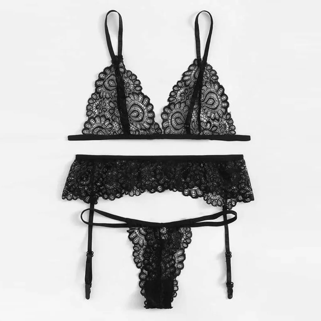 3 шт. сексуальный женский кружевной бюстгальтер с v-образным вырезом большого размера, стринги, комплект нижнего белья, S-2XL