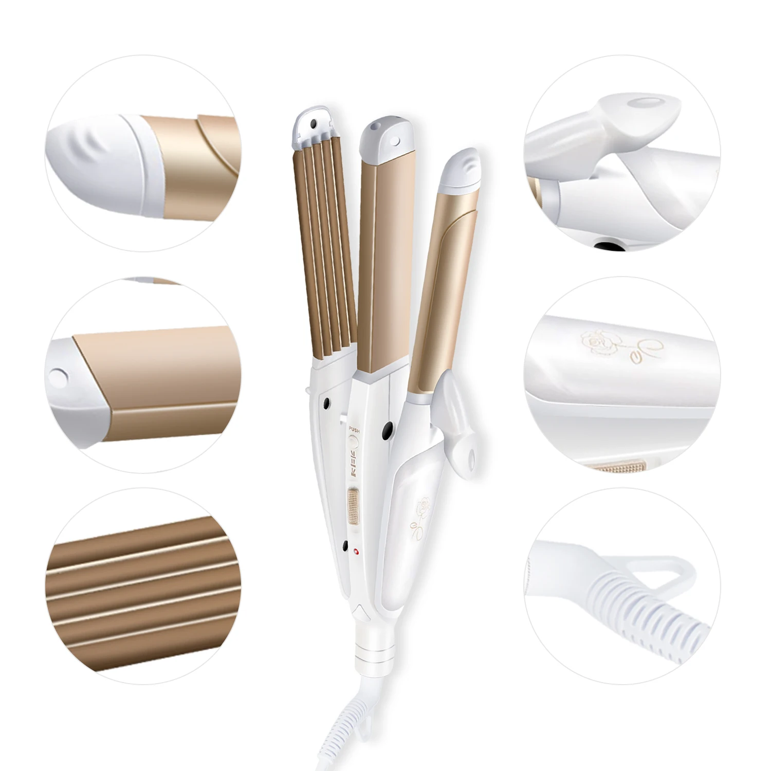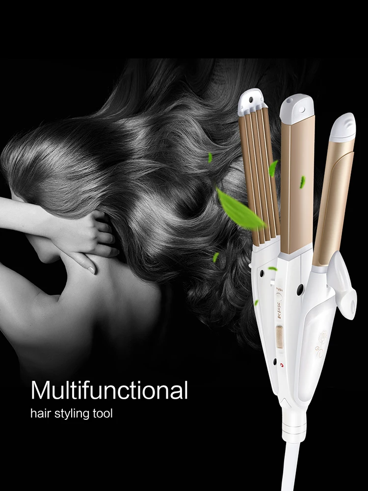 "Напряжение: 110-240 В Частота: 50/60 Гц Мощность: 60 Вт Температура: PTC Материал теплового проводника: керамическое покрытие из алюминиевого сплава Диаметр теплопроводности: 20-30 мм Контроль температуры при постоянной температуре 180 C Длина шнура питания: около 2 метров, вращение на 360 градусов. Многофункциональный выбор, эффект прямых волос, эффект кукурузы, эффект завивки."