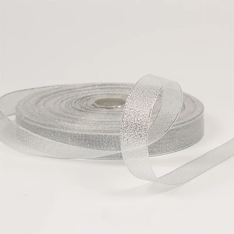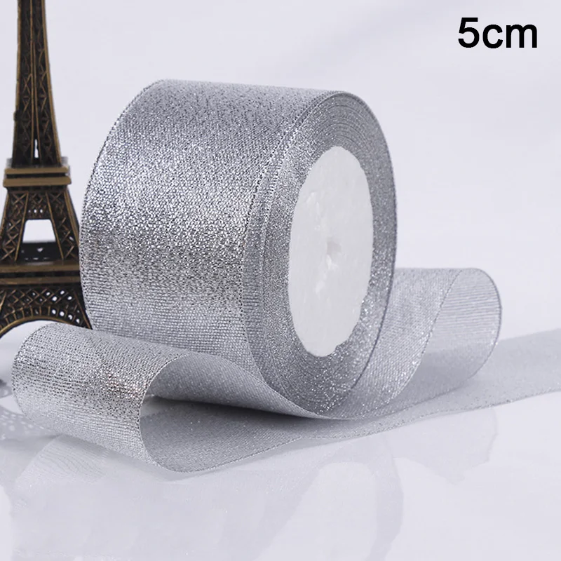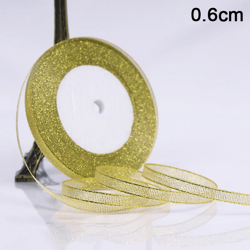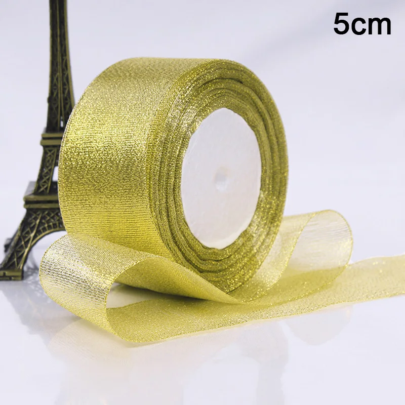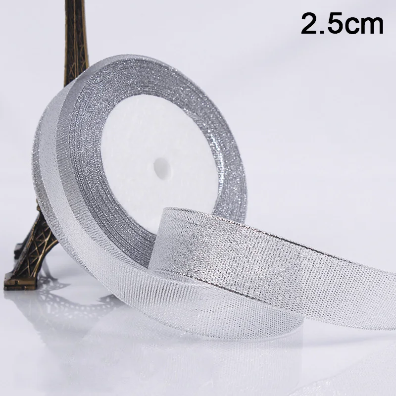Шелковый Атласный органза лента 0,6-5 см блеск вышитые лук ленты для свадебного торта подарок украшения рукоделия золото/серебро