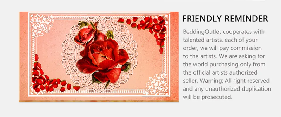 Dear dropshippers, please read this carefully:You are allowed to sell these products on your store, by following these terms:1. Keep the arts' original name when naming your product.2. Include the artist's name.3. Add the artist's logo to your photo gallery.Example for a product name:Rose by Ismot Esha Bedding SetBy following these rules, you are protected under our copyrights terms and your store will be safe from our IPR (Intellectual property) actions against unauthorized selling.Последние несколько лет часто пользуюсь услугами этой компании, частенько делаю заказы, для дома, для детей и для себя любимой, и... Читать отзыв полностью...
