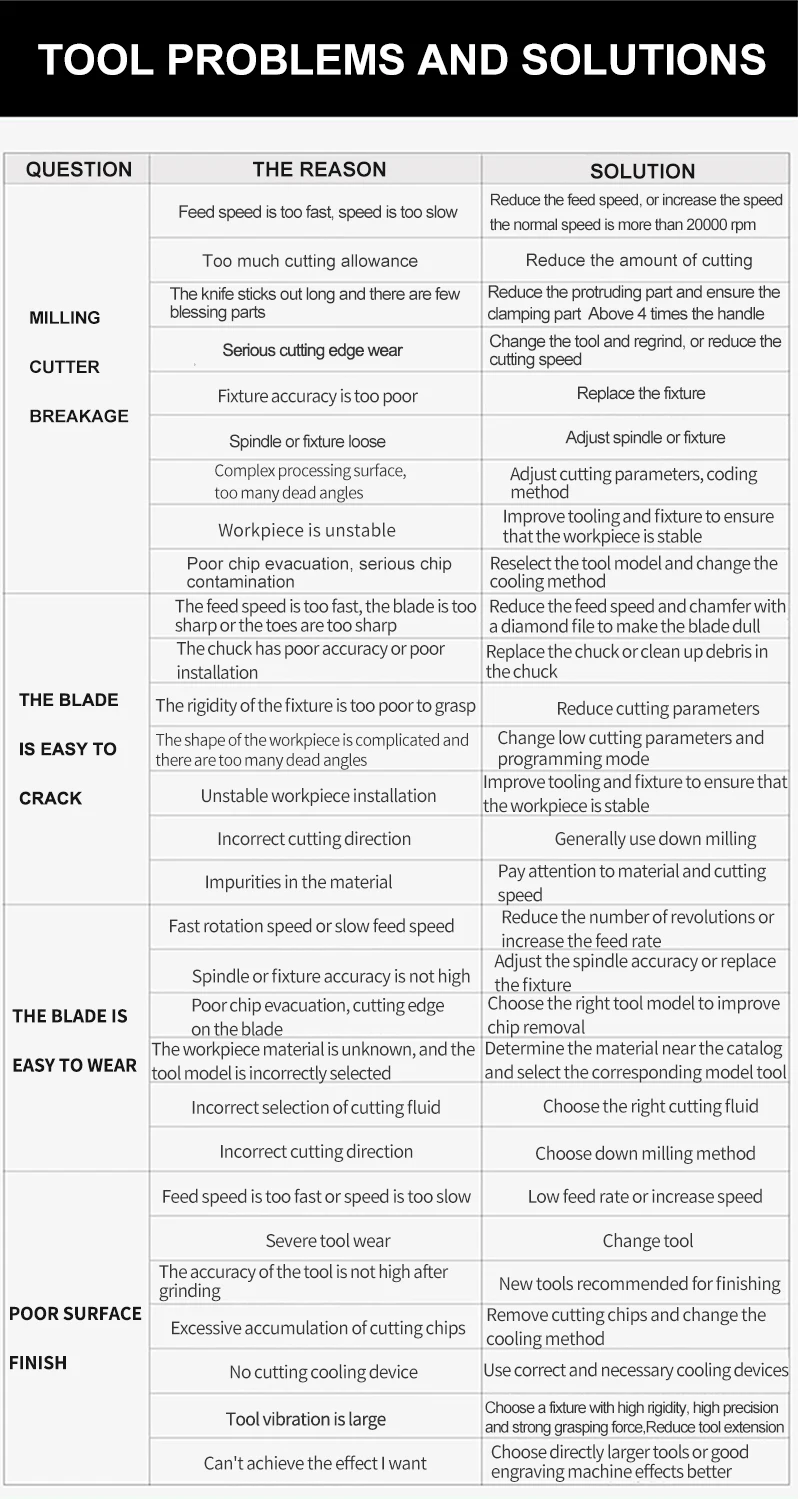 Для достижения требуемой цели обязательно используйте инструменты с короткими краями как можно больше. Слишком длинный режущий край или слишком длинный корпус инструмента вызовут вибрацию и отклонение во время обработки, что приведет к повреждению инструмента и повлияет на качество обработки. Мы рекомендуем использовать инструмент с большим диаметром хвостовика