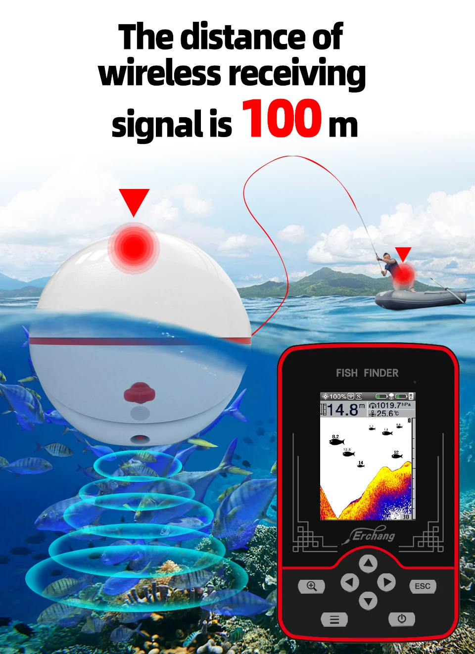 Erchang перезаряжаемый беспроводной портативный эхолот 60 м глубина воды датчик давления воздуха гидролокатор рыболокатор