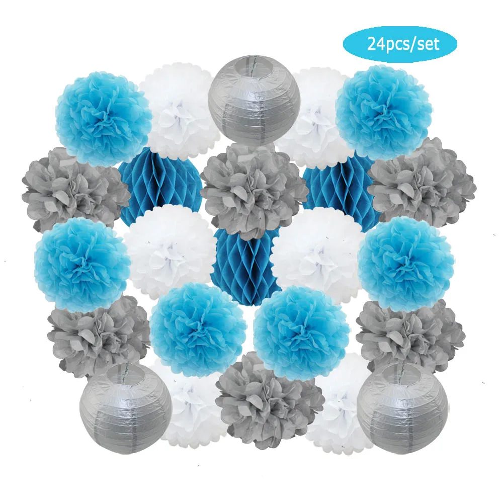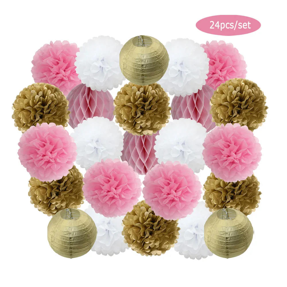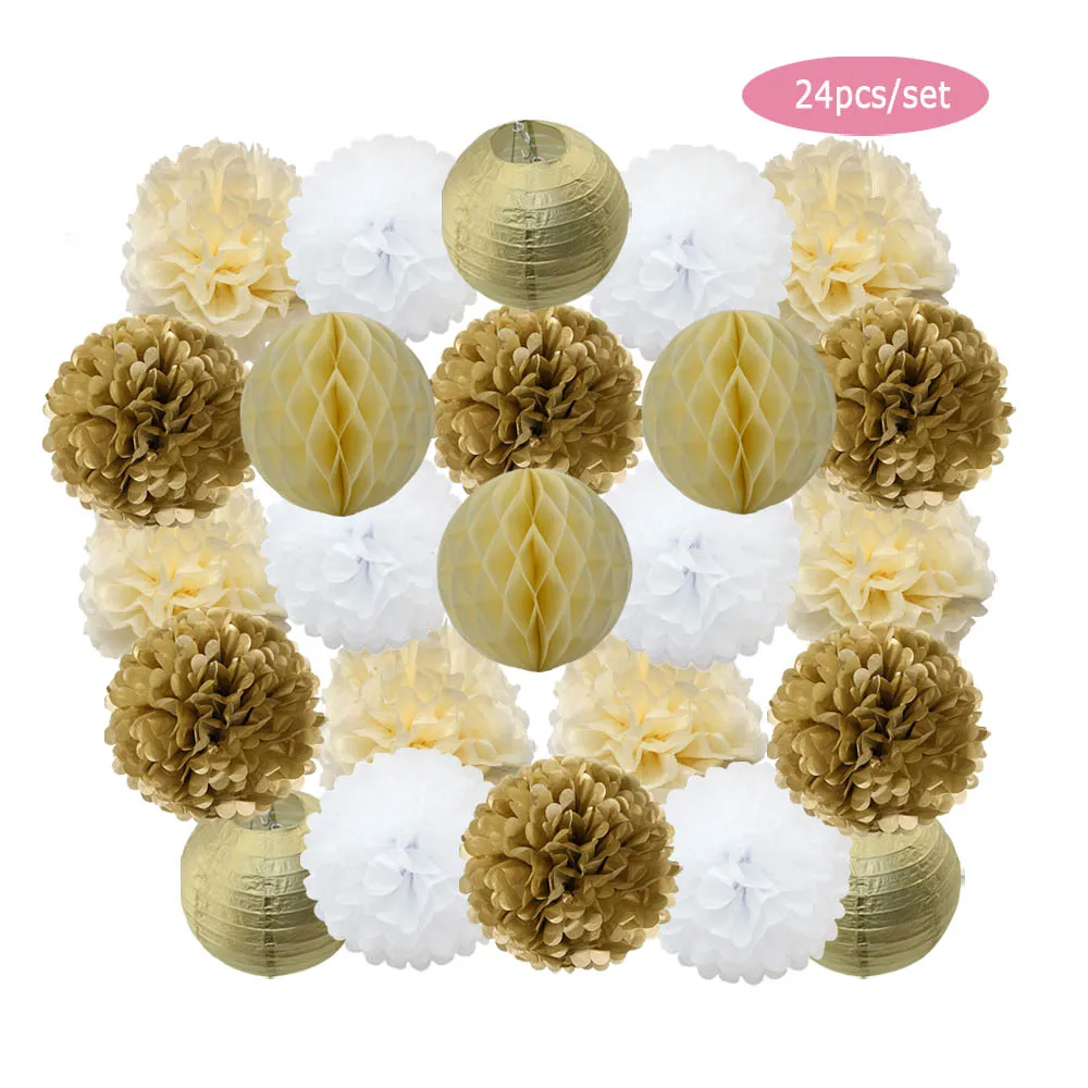 1 комплект = 3 бумажных фонаря + 3 сота + 18 бумажных помпонов