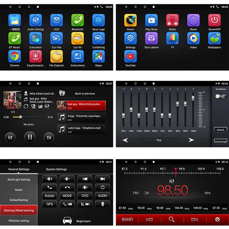 5. Функция заднего вида: Поддержка входа камеры заднего вида, поддержка автомобиля более безопасна и удобна; 6. Настройка радио: Поддержка настройки FM, вы можете слушать радио, которое вас интересует, наслаждаться временем вождения.