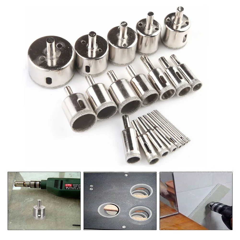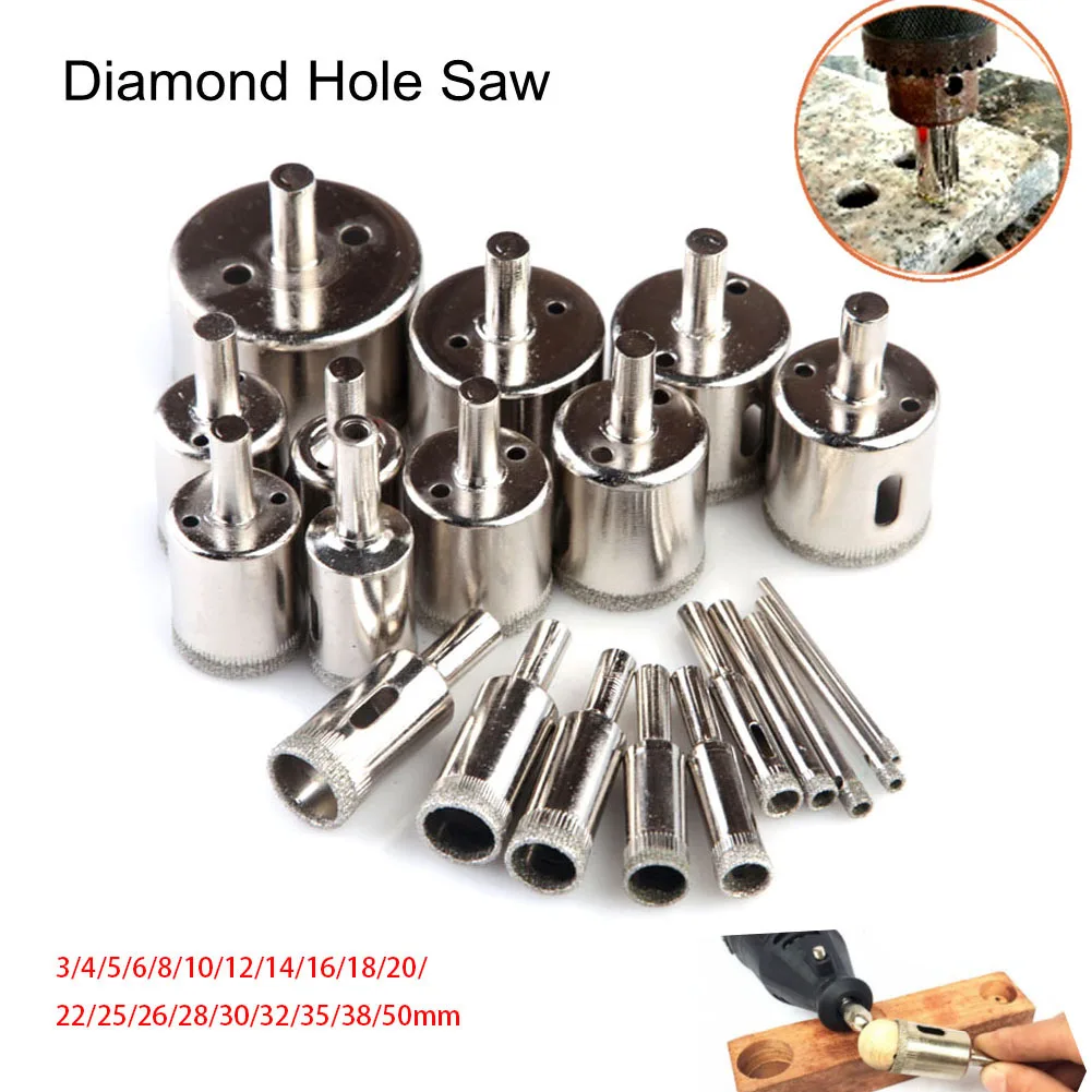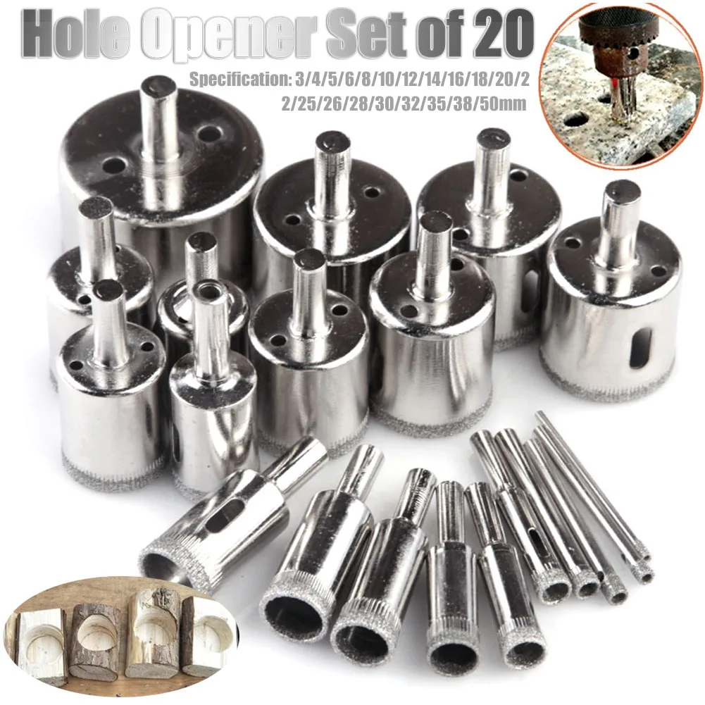 20 шт. набор сверл с алмазным покрытием для плитки, мраморного стекла, Керамической Пилы, сверла для электроинструментов 3 мм-50 мм, инструменты для сверления