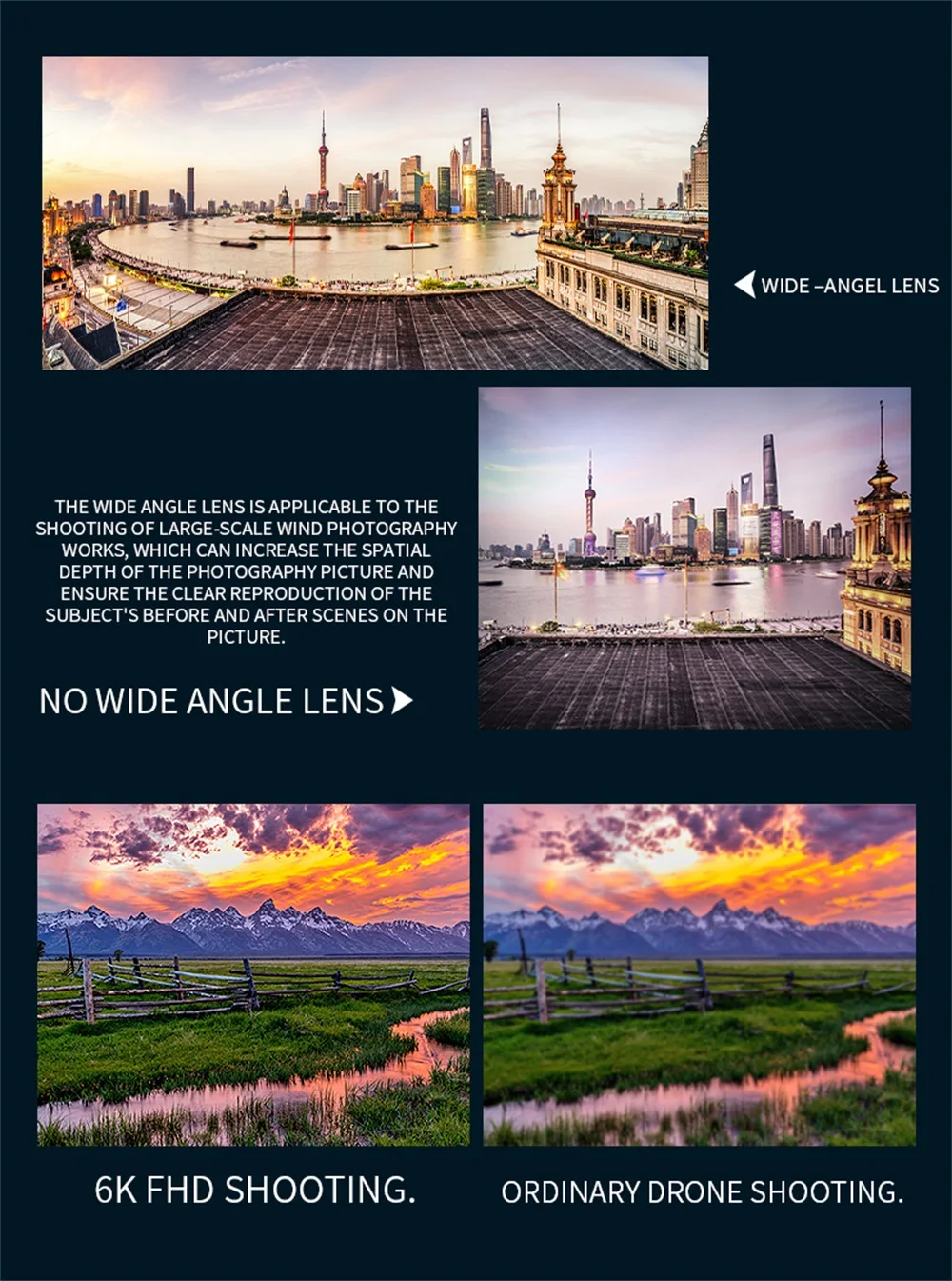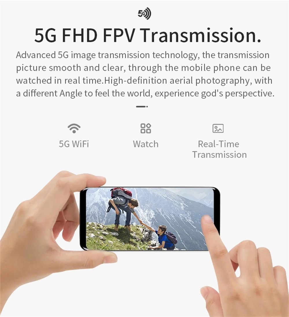 Оснащен широкоугольной камерой 6K ESC высокой четкости и GPS, угол обзора 120 °, Разрешение камеры: 6K (4800*2700); Номер рамки передачи изображения в реальном времени: 25 кадров/сек. Благодаря оптическому потоку и позиционированию GPS фиксированная высота точно фиксируется и положение стабильно и приостановлено, что эффективно предотвращает тряску экрана при съемке фотографий и видео. 5G обратное расстояние изображения достигает 500 метров. Через приложение «Мобильный телефон», все записанные материалы могут быть записаны в режиме реального времени и своевременно передаются на мобильный телефон, не упуская ни единого момента. Поддержка распознавания жестов: в пределах 1-5 м от самолета, вы можете завершить съемку, направив камеру и сделав жесты камеры. Он поддерживает возврат одним нажатием кнопки GPS для точки снятия, низкое энергопотребление и отсутствие возврата сигнала.