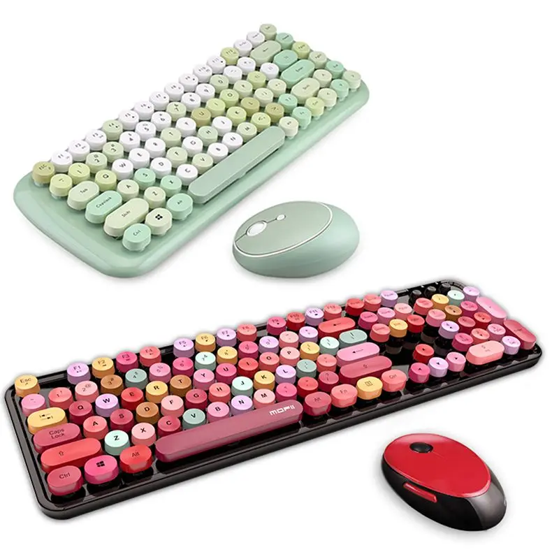 MOFII/милый комплект беспроводной клавиатуры и мыши смешанных цветов 2,4 ГГц и милый комплект для девочек (зеленый цвет)
