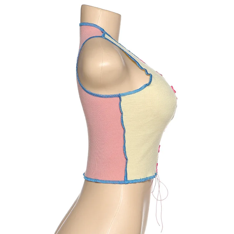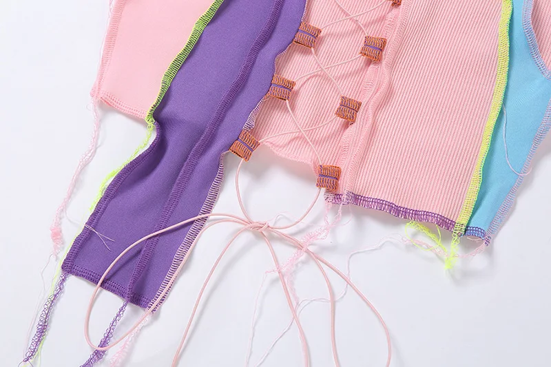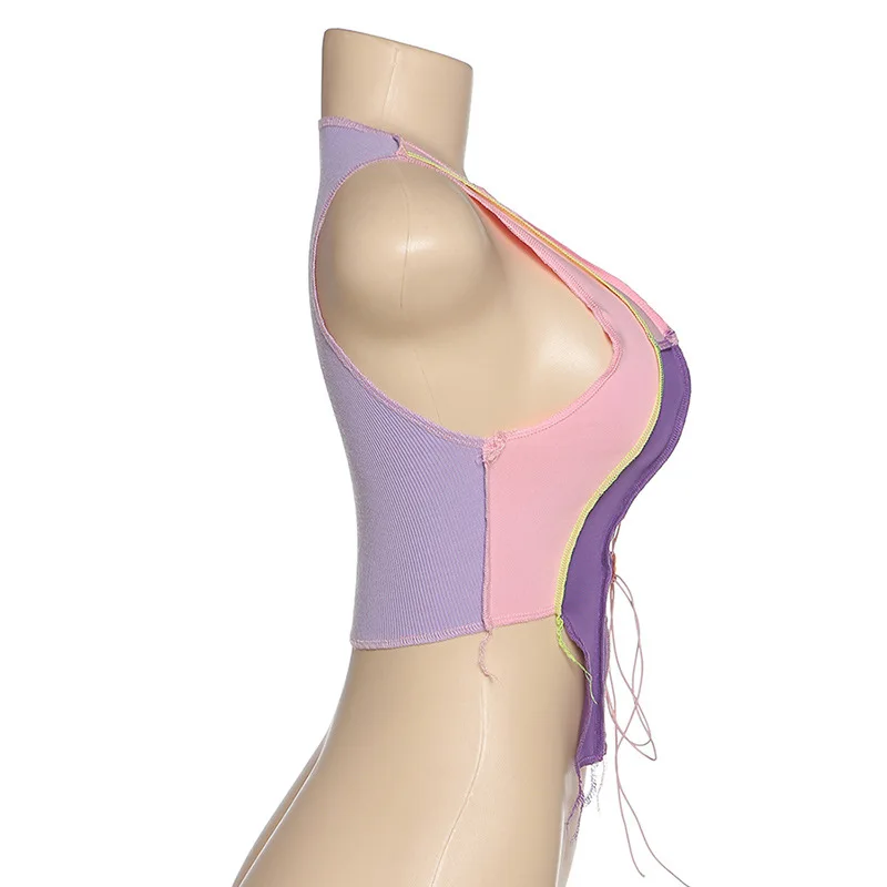 Сексуальная Открытая камзол Женские ребристые в стиле панк ТРИКОТАЖНЫЙ УКОРОЧЕННЫЙ ТОП; Клубная праздничная одежда Цветная майка с повязкой Женский жилет