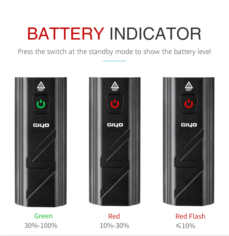 Нажмите переключатель в режиме ожидания, чтобы показать уровень заряда батареи Зеленый: 30%-100% Красный: 10%-30% Красная вспышка:<10%