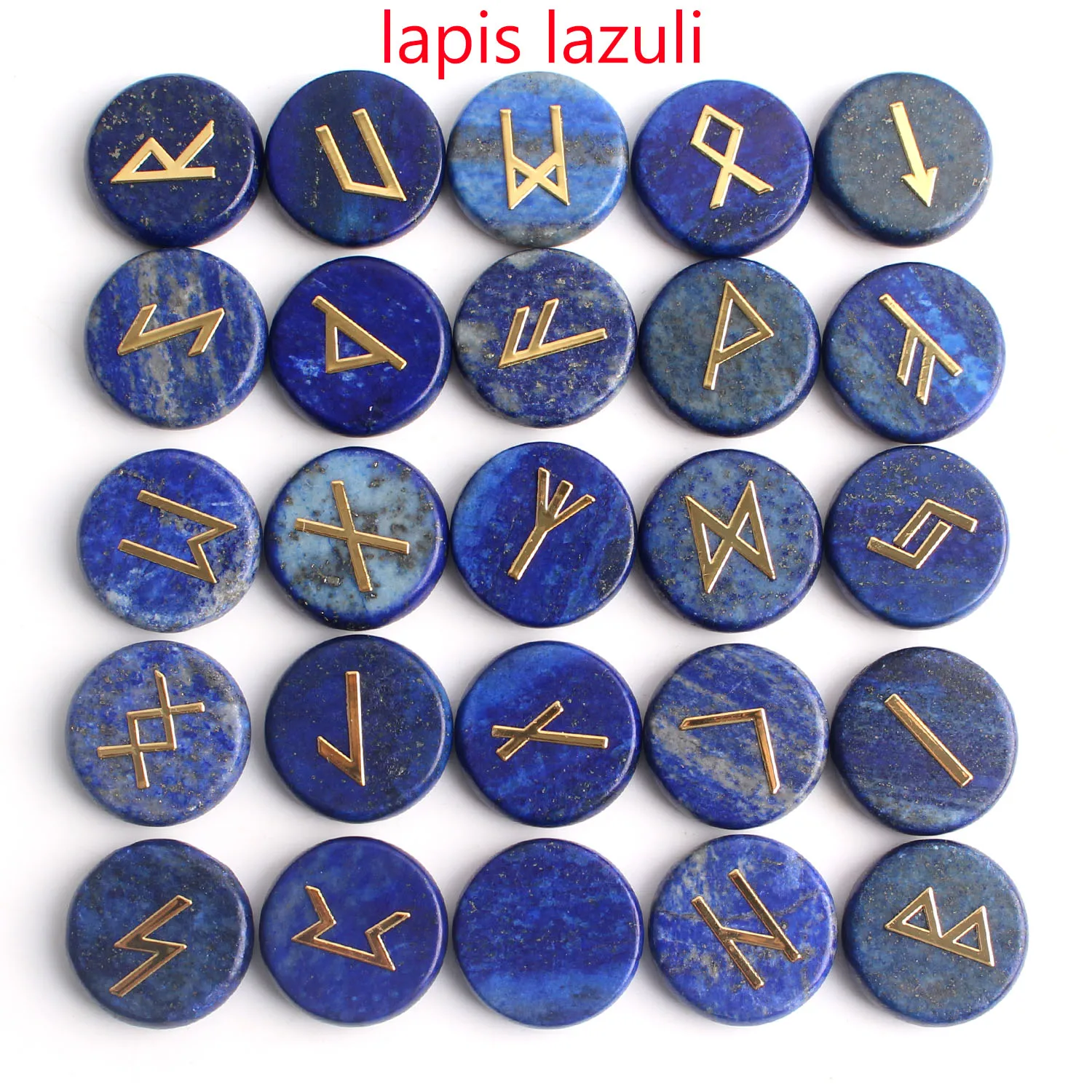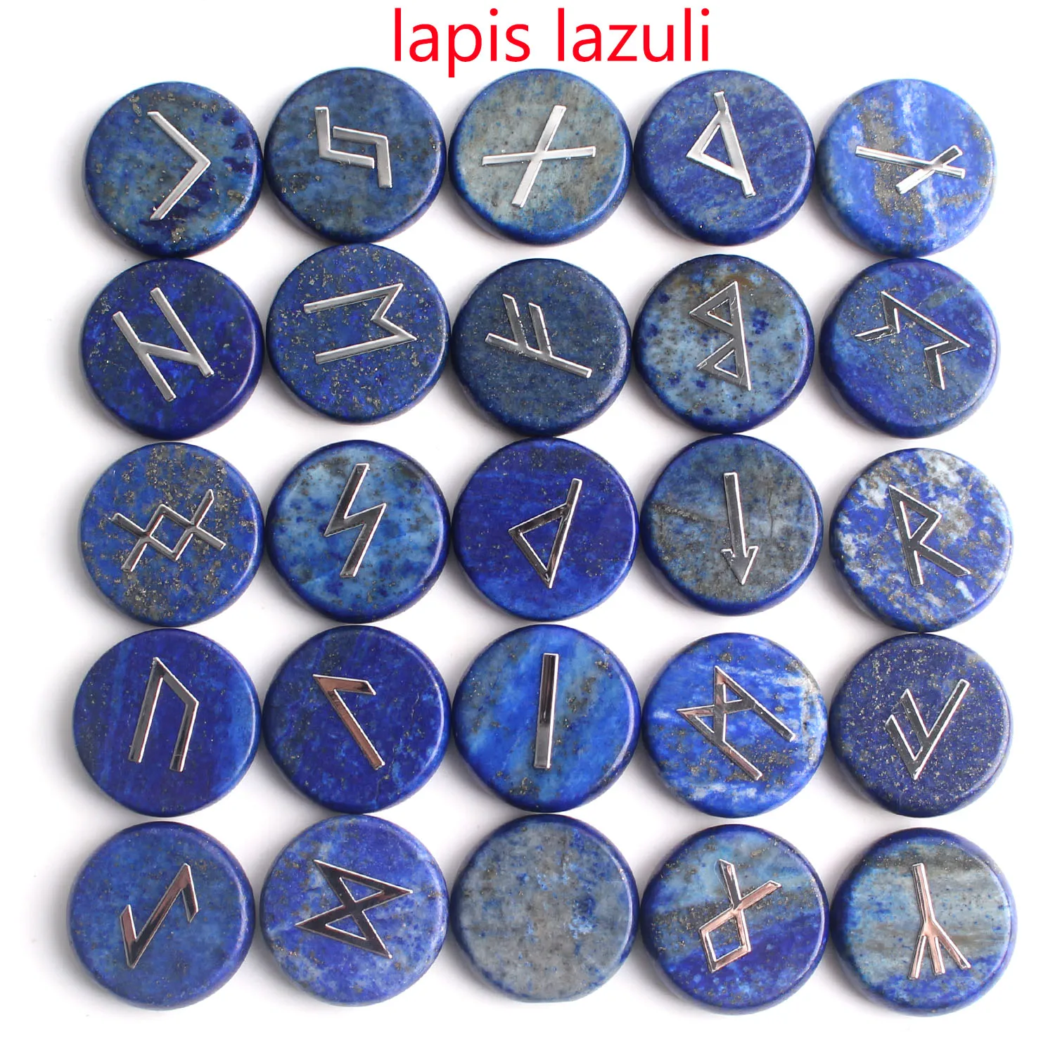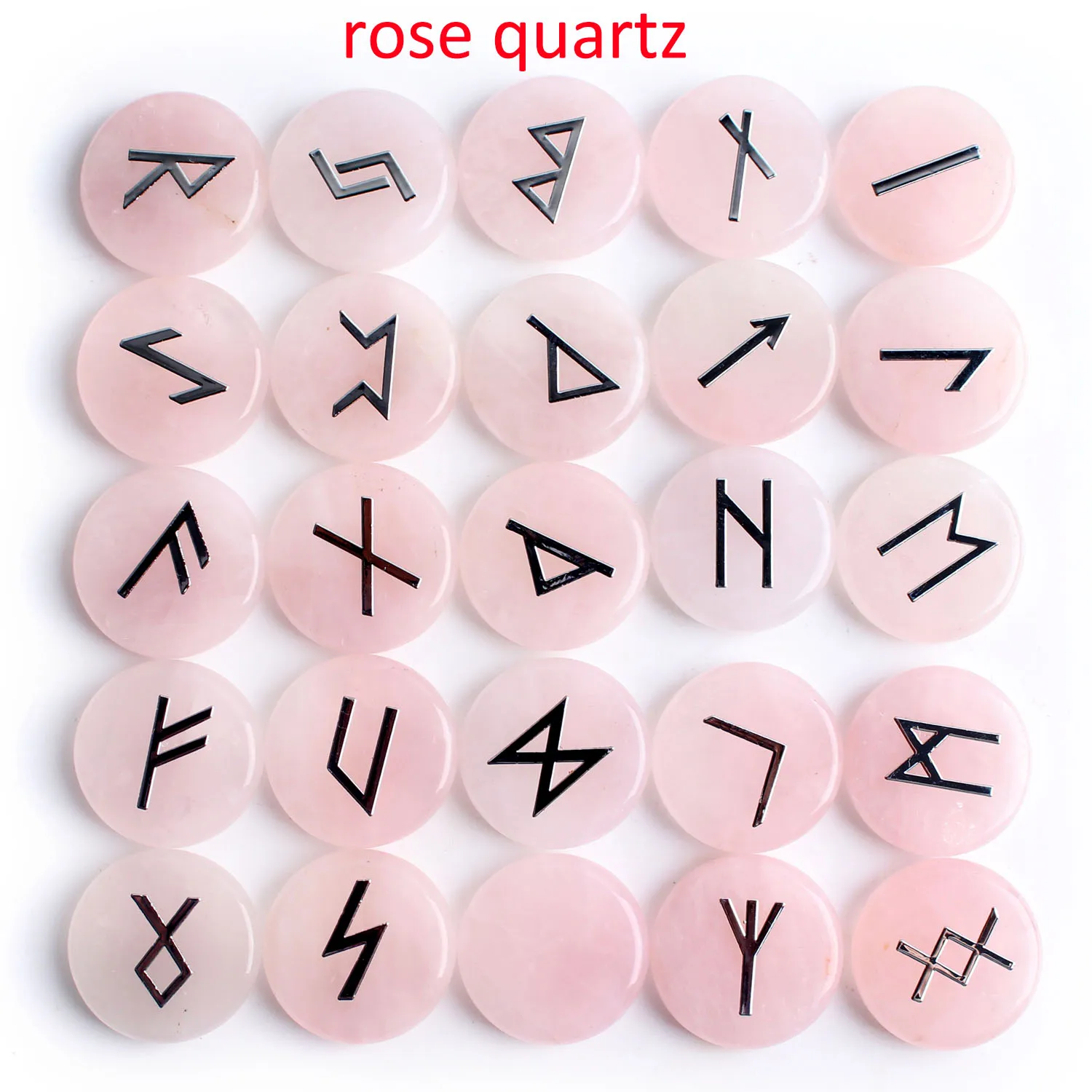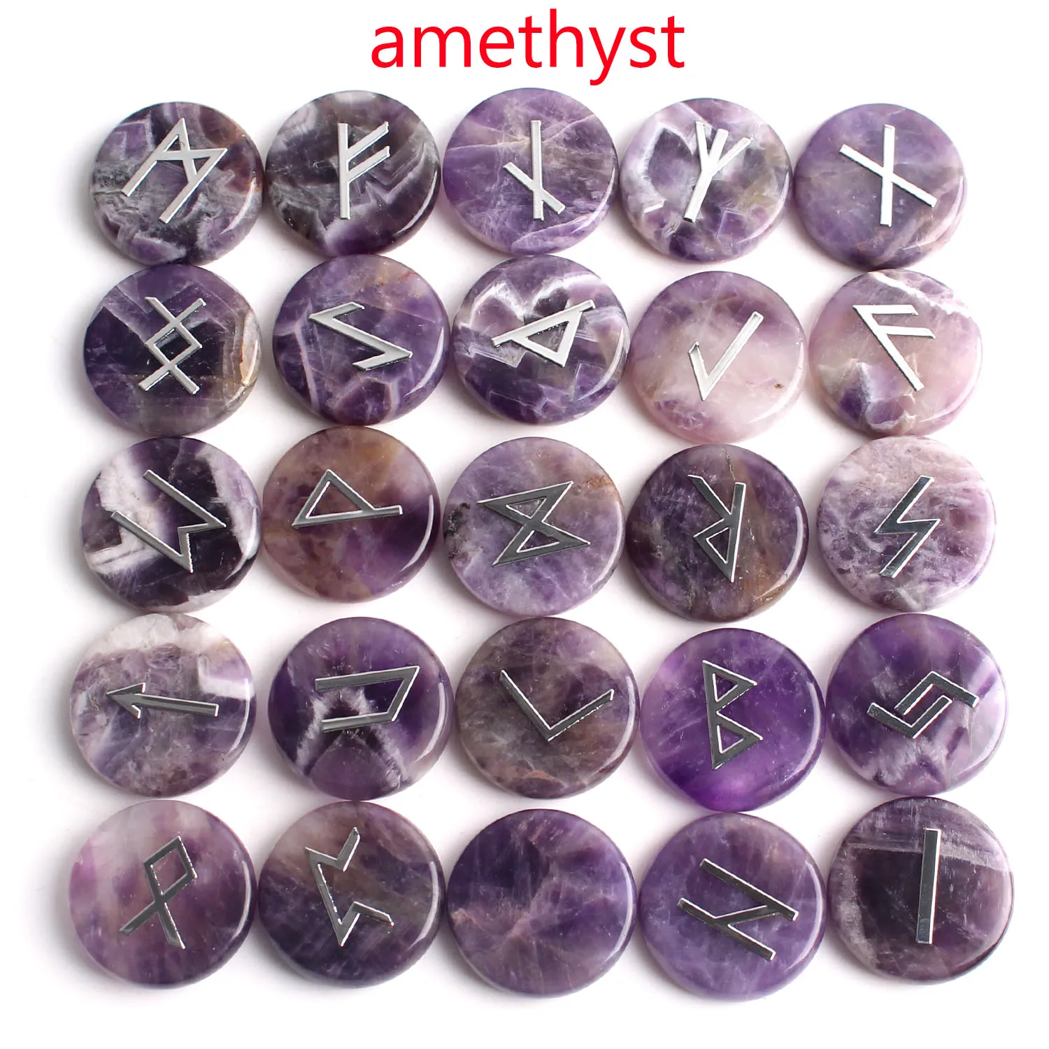 25Pcs Natural Chakra Crystal Rune Divination Stone Pendant Tumbled Runes Stone Polished Gemstone Gravel Healing Aquariums Decor