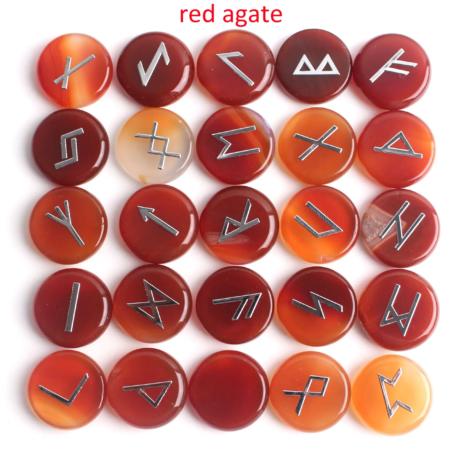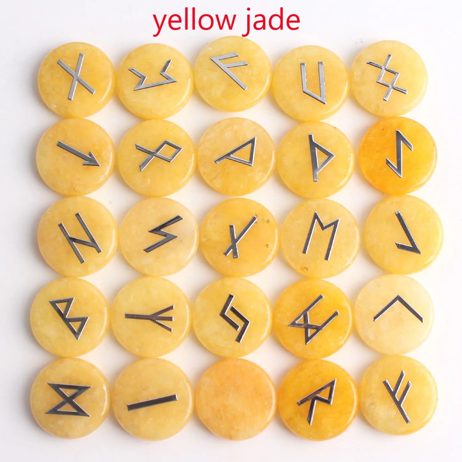 25Pcs Natural Chakra Crystal Silver Rune Divination Stone Pendant Tumbled Runrs Polished Gemstone Gravel Healing Aquariums Decor