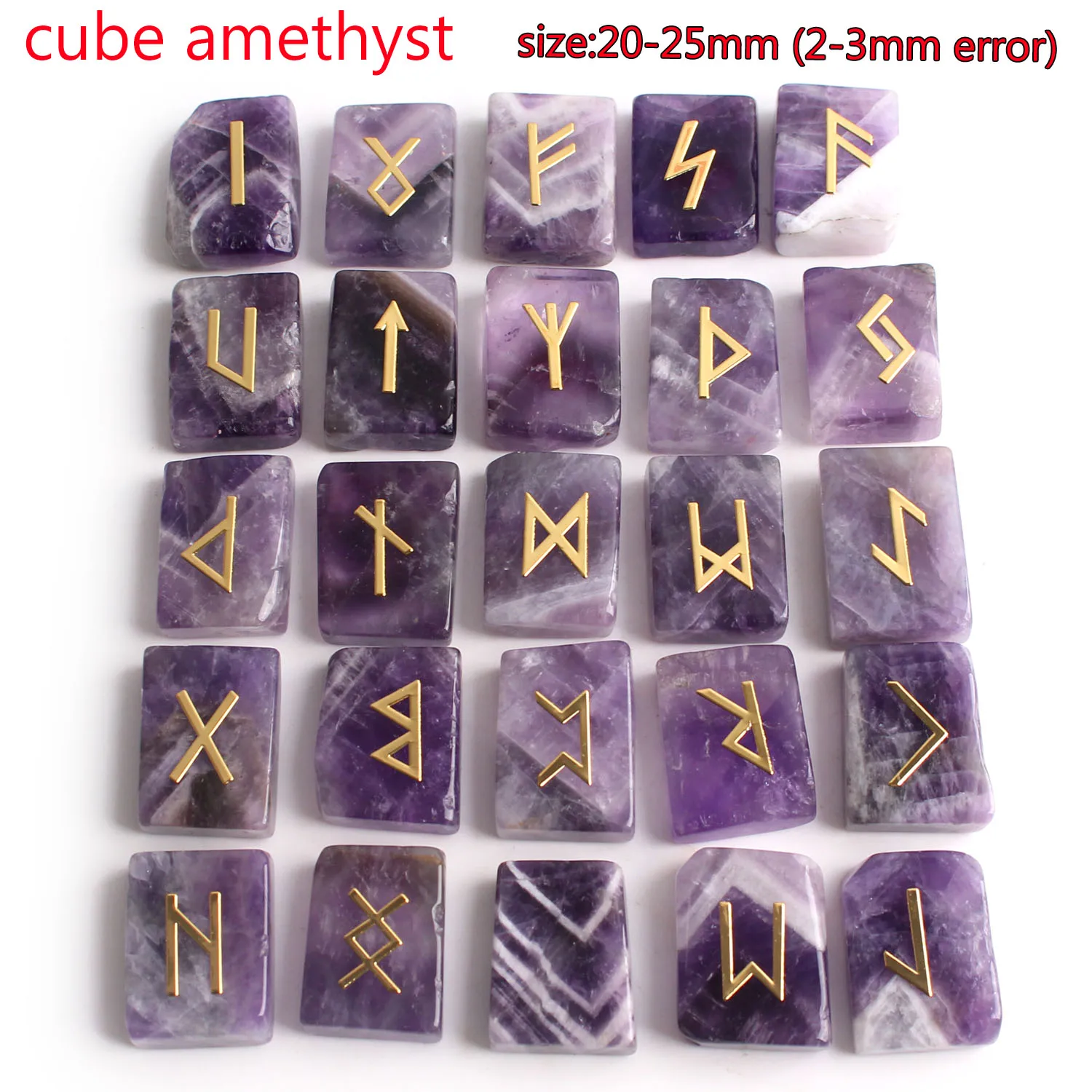 25Pcs Natural Chakra Crystal Rune Square Shaped Pendant Tumbled Stone Polished Gemstone Gravel Healing Aquariums Decor