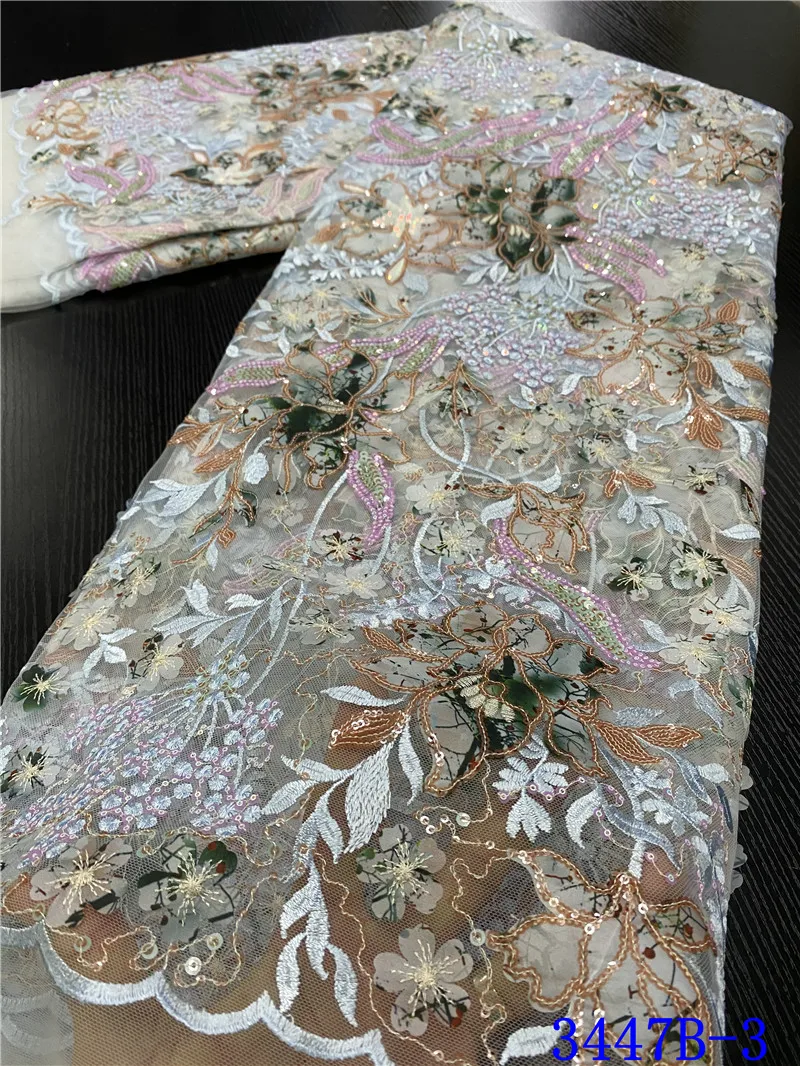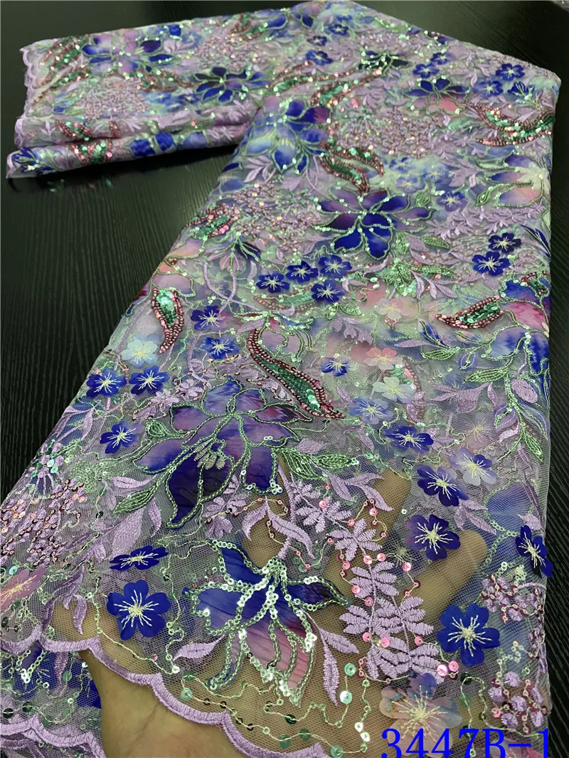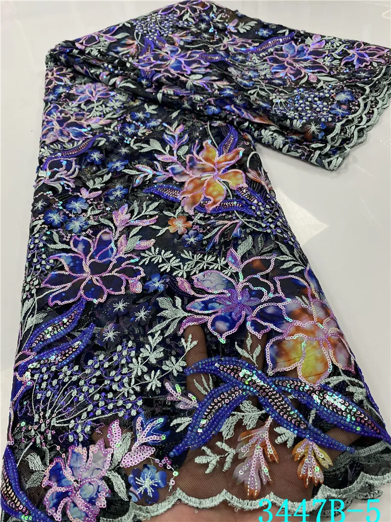 NIAI последняя африканская 3D кружевная ткань синий французский Тюль кружевная ткань французская сетка кружева тюль свадебное платье X3447B-2
