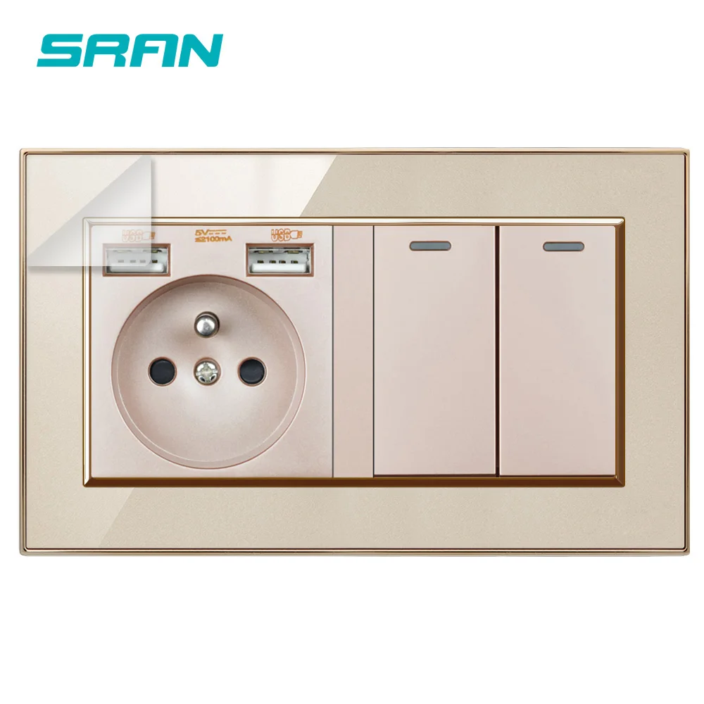 FR розетка с 2usb + 2Gang1Way (146 мм * 86 мм) На поверхности изделия имеется защитная пленка, которая может быть удалена после установки
